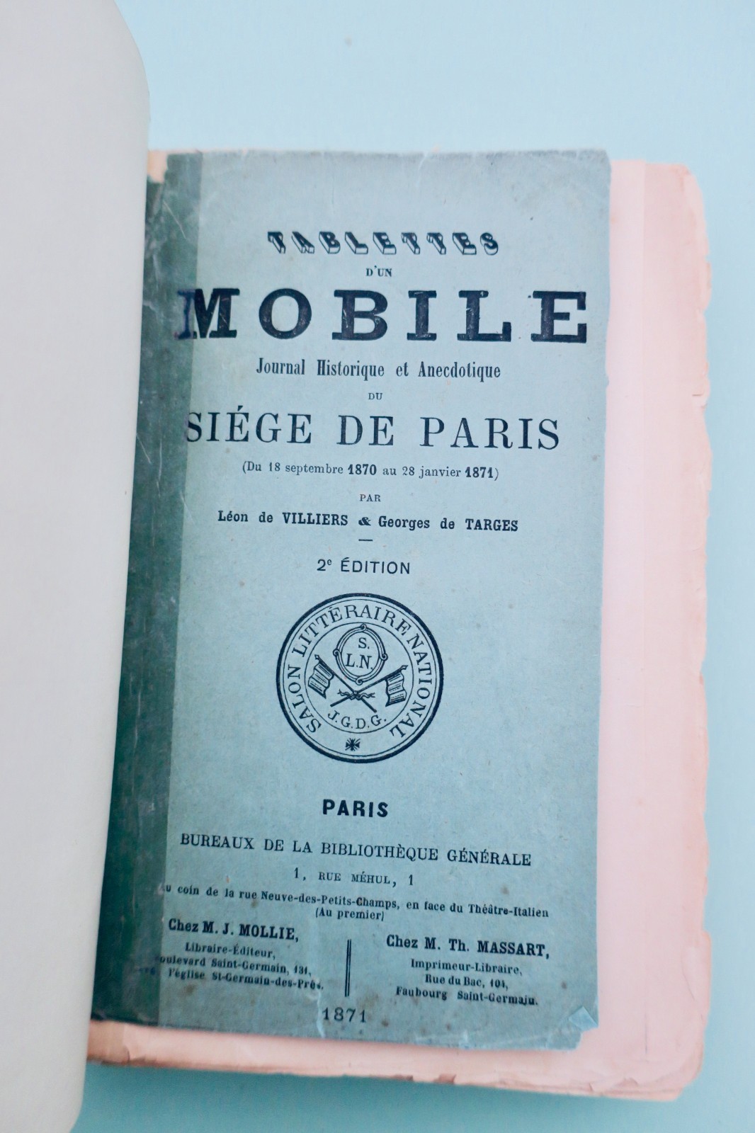 Tablettes d’un mobile. Journal historique et anecdotique du Siège de Paris (du 18 sept. 1870 au 28 janv. 1871).
