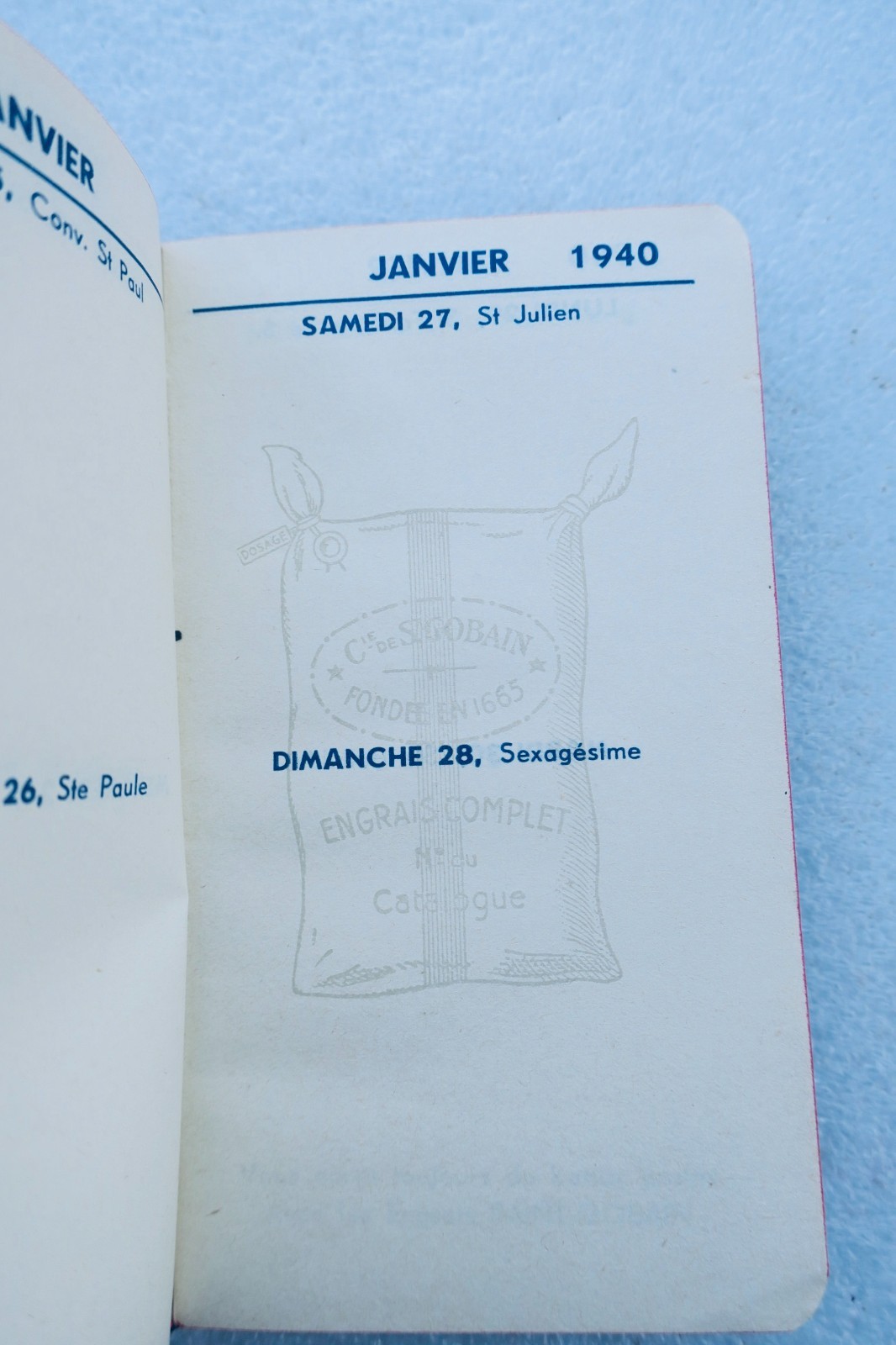 Calpin calendrier Engrais chimiques manufacture Saint-Gobain 74 x 125 mm.