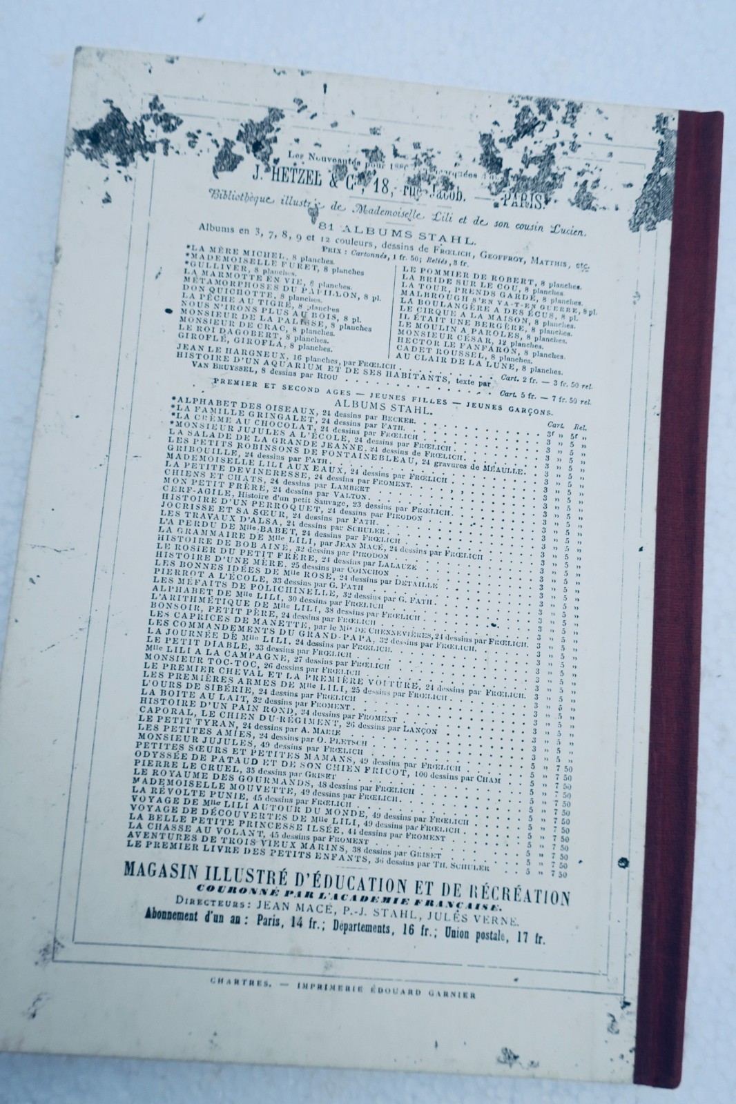 Paris, J. Hetzel, in 8°, reliure cartonnée remplacée, (récente, dos toilée), intérieur originale en revanche, catalogue AB in fine
