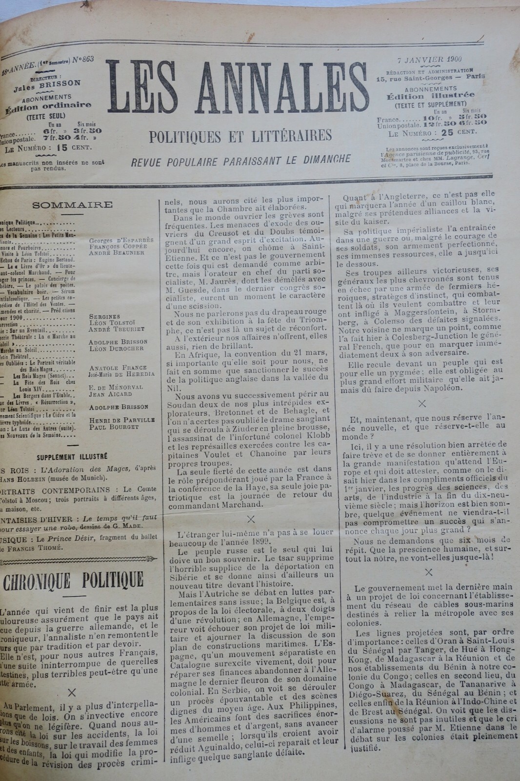 ANNALES POLITIQUES ET LITTERAIRES 1900 1er semestre