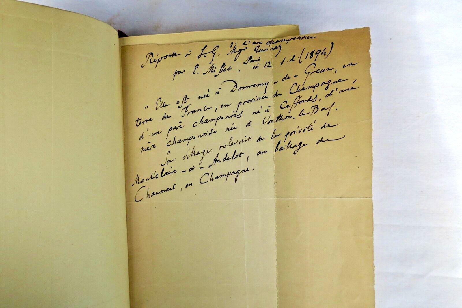 Edition originale & un des exemplaires sur vélin du Marais, truffé d’une coupure de journal, d’une carte postal destinée à Monsieur Brousson, d’un petit mot, ainsi que d’une longue & belle dédicacé de l’auteur en page de faux titre.