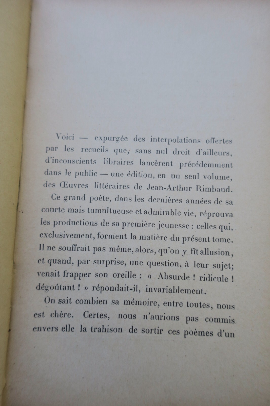 Edition en partie originale, donnée par Paterne Berrichon, beau-frère de Rimbaud, et Ernest Delahaye, un des camarades de collège du poète & ornée de la reproduction photographique du tableau représentant Rimbaud, peint en 1872 par H. Fantin-Latour.