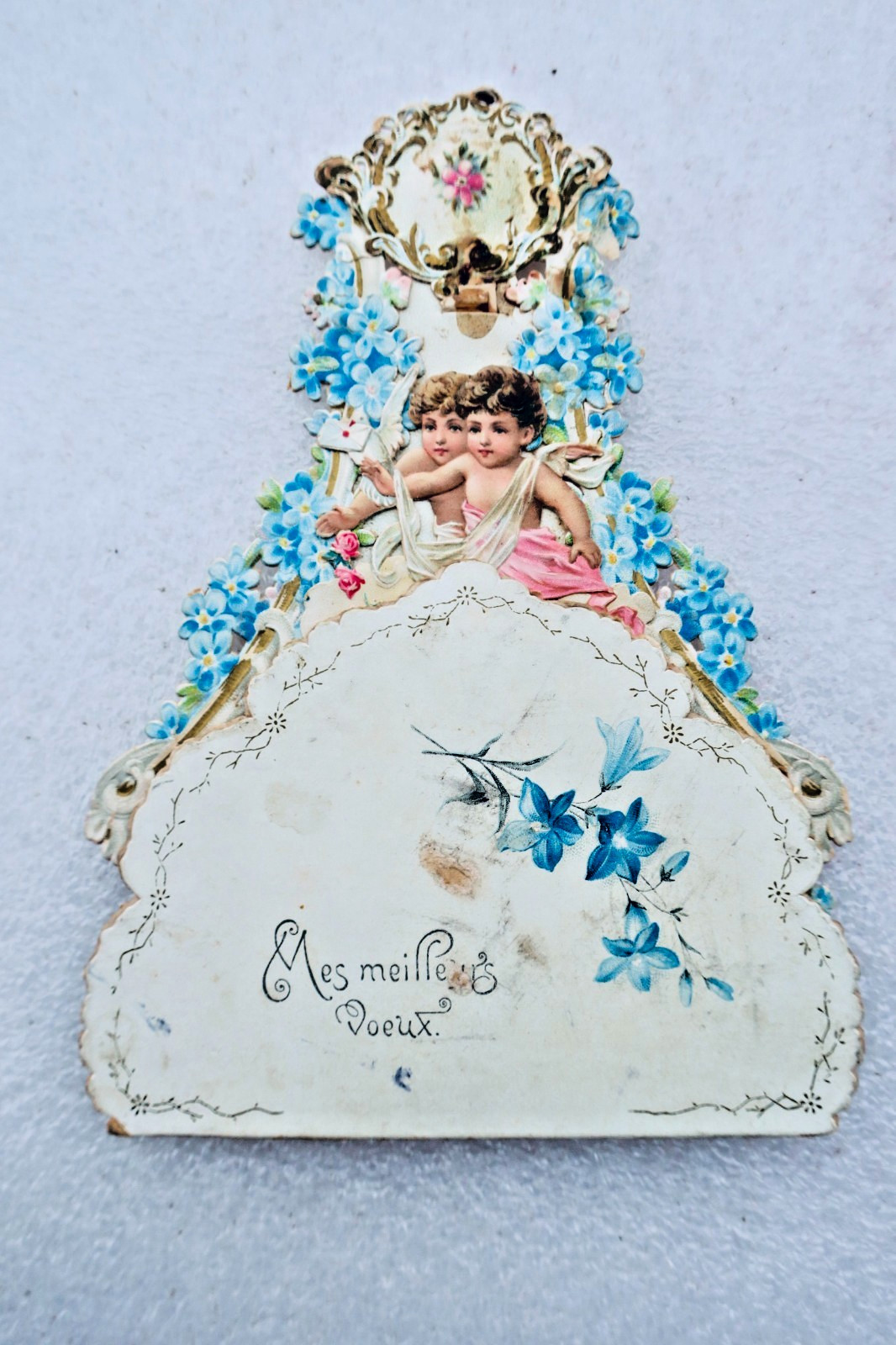 Belle époque carte MEILLEURS VOEUX dépliante 15 x 11 cm.
