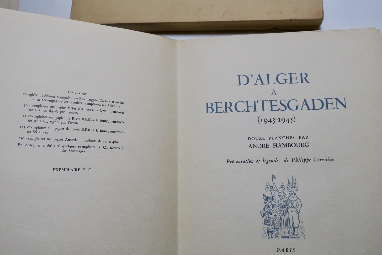 Aux dépens de l’artiste, 1947. Paris, broché; in-4°, Feuille à feuille sous chemise & étui cartonné, les planches ont été réalisées dans les ateliers de G. Duval à Paris et COLORIÉES entièrement à la main par René Euffès à Paris – soit 8 planches par André Hambourg – Présentation et légendes de Philippe Lorraine.