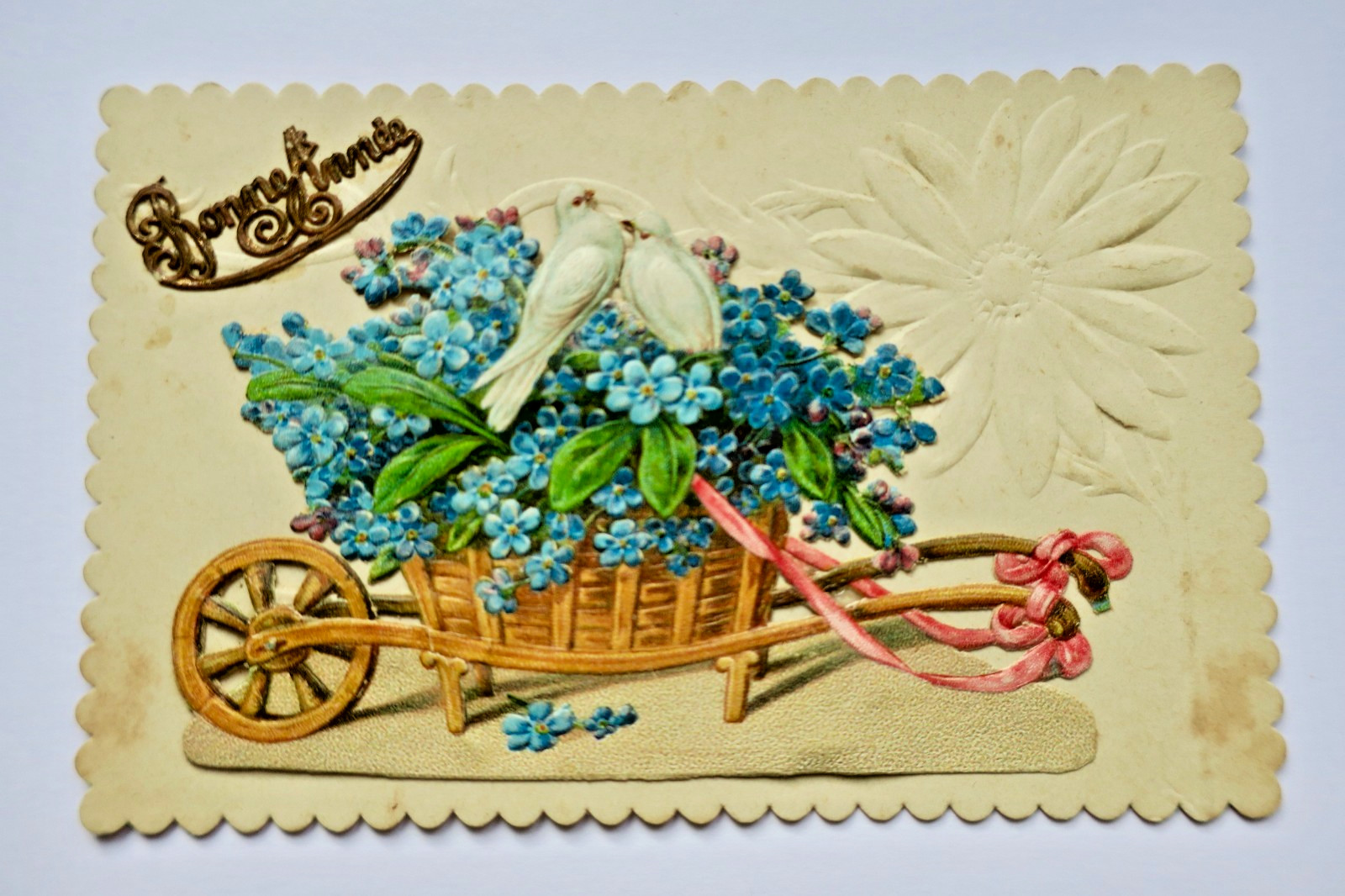 VOEUX SINCERES DE BONNE ANNEE relief gaufrée. BONNE ANNEE 1906 Lectoure. BONNE ANNEE broderies et gaufrées. Bonne année 1906. Bonne année 2 cpa broderies.