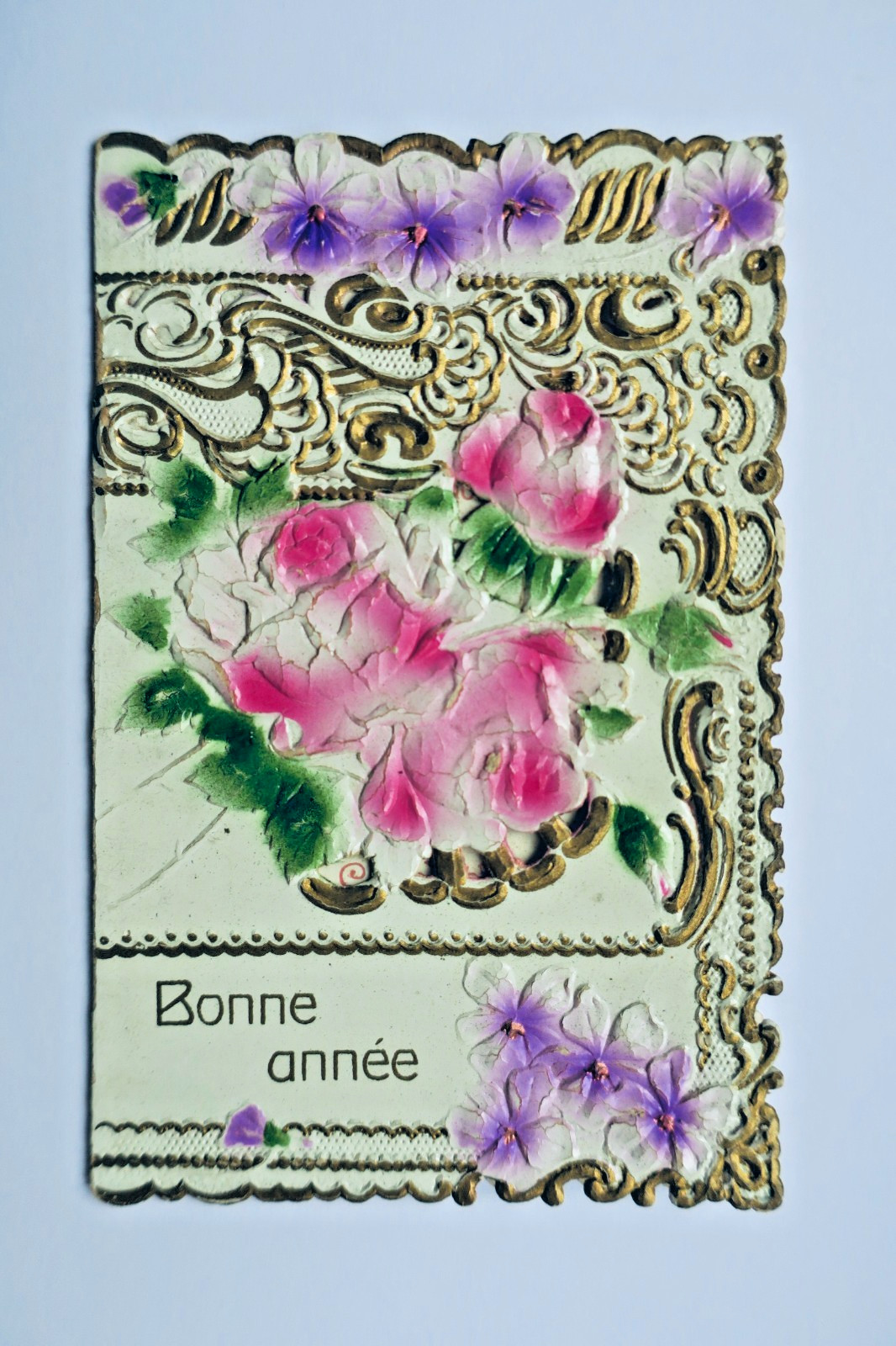 BONNE ANNEE gaufré & relief. Bonne année 1906. Bonne année 2 cpa broderies. BONNE ANNEE broderies et gaufrées. BONNE ANNEE 1906 Lectoure.