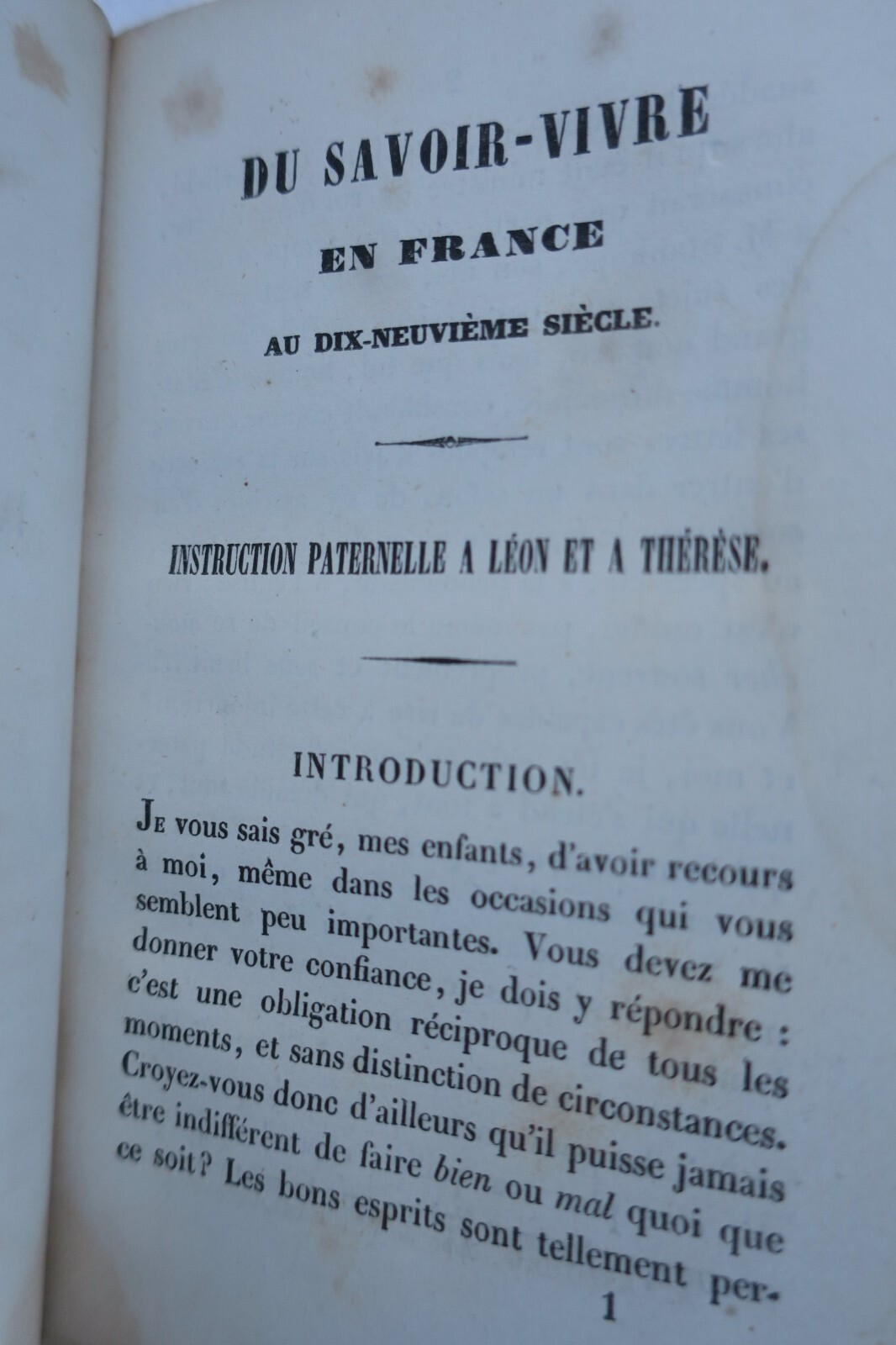 Du savoir-vivre en France au dix-neuvième siècle, ou Instruction d’un père à ses enfants, par Mme la comtesse de B….