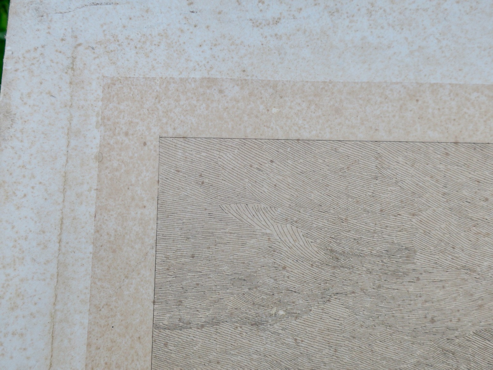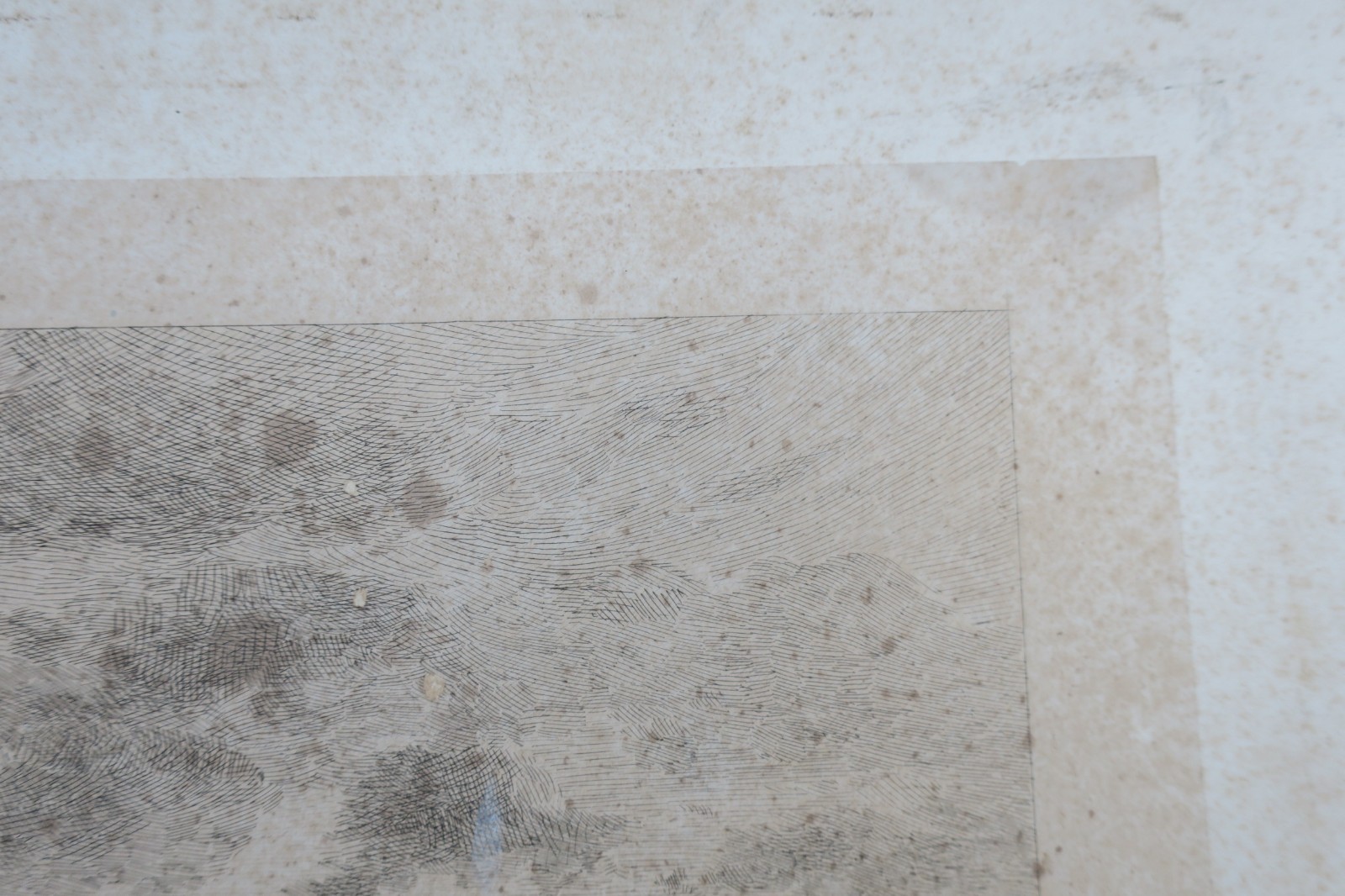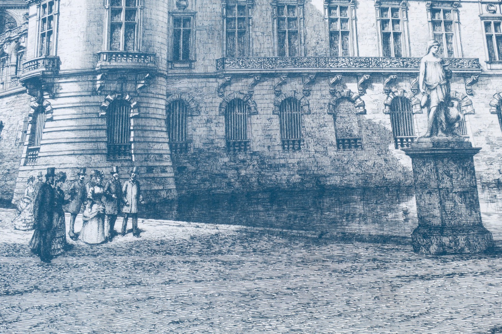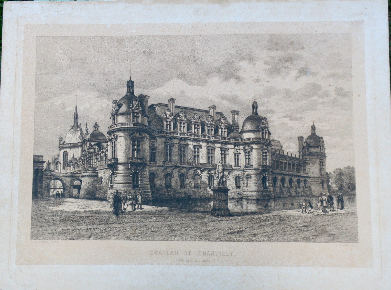 Château de Chantilly (côté des jardins), taille de la gravure 65 x 42 cm., en creux, montée sur un carton de 4 mm. d’épaisseur