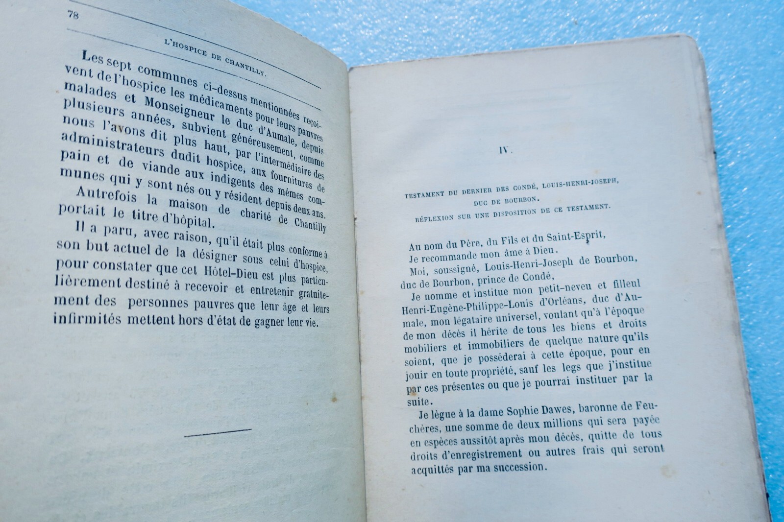 les libraires de Chantilly, 1879, in 12, broché (couverture abimée),180 pages, « tampon de colportage »