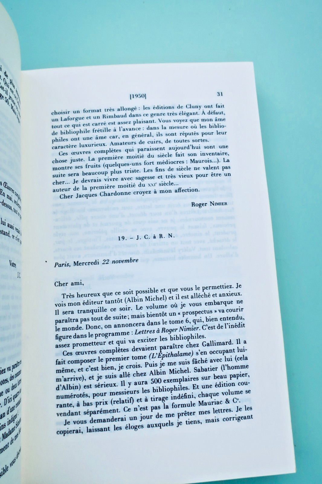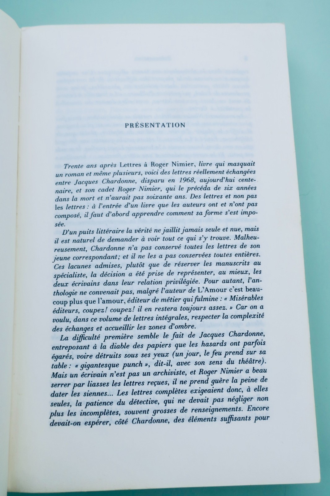 CHARDONNE JACQUES ET NIMIER ROGER CORRESPONDANCE 1950-1962