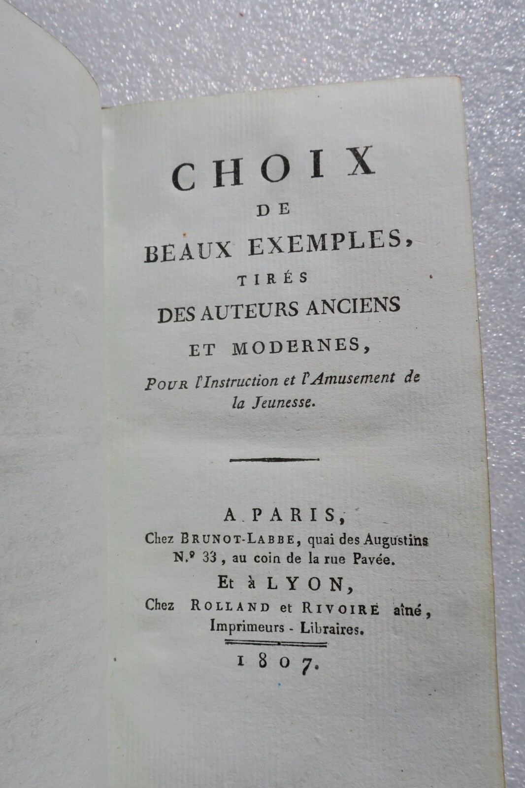 Choix de beaux exemples tirés des auteurs anciens et modernes pour l’instruction et l’amusement de la jeunesse.