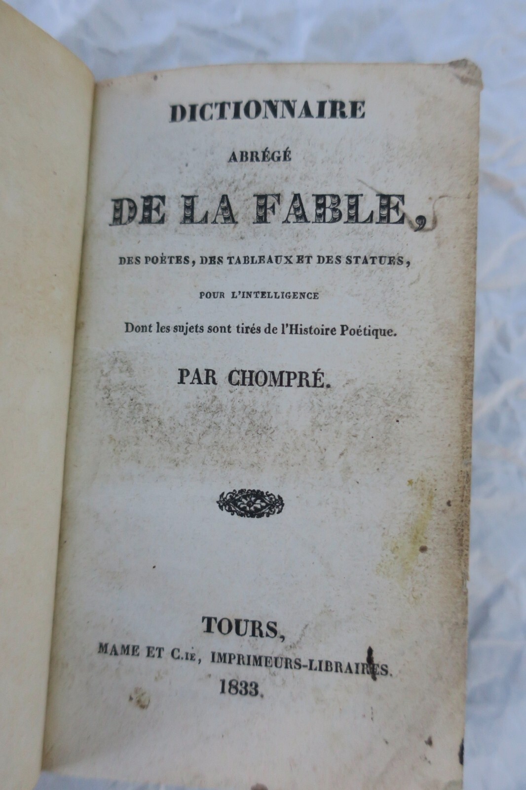 CHOMPRE Dictionnaire abrégé de la fable, des poètes, des tableaux et .. 1833