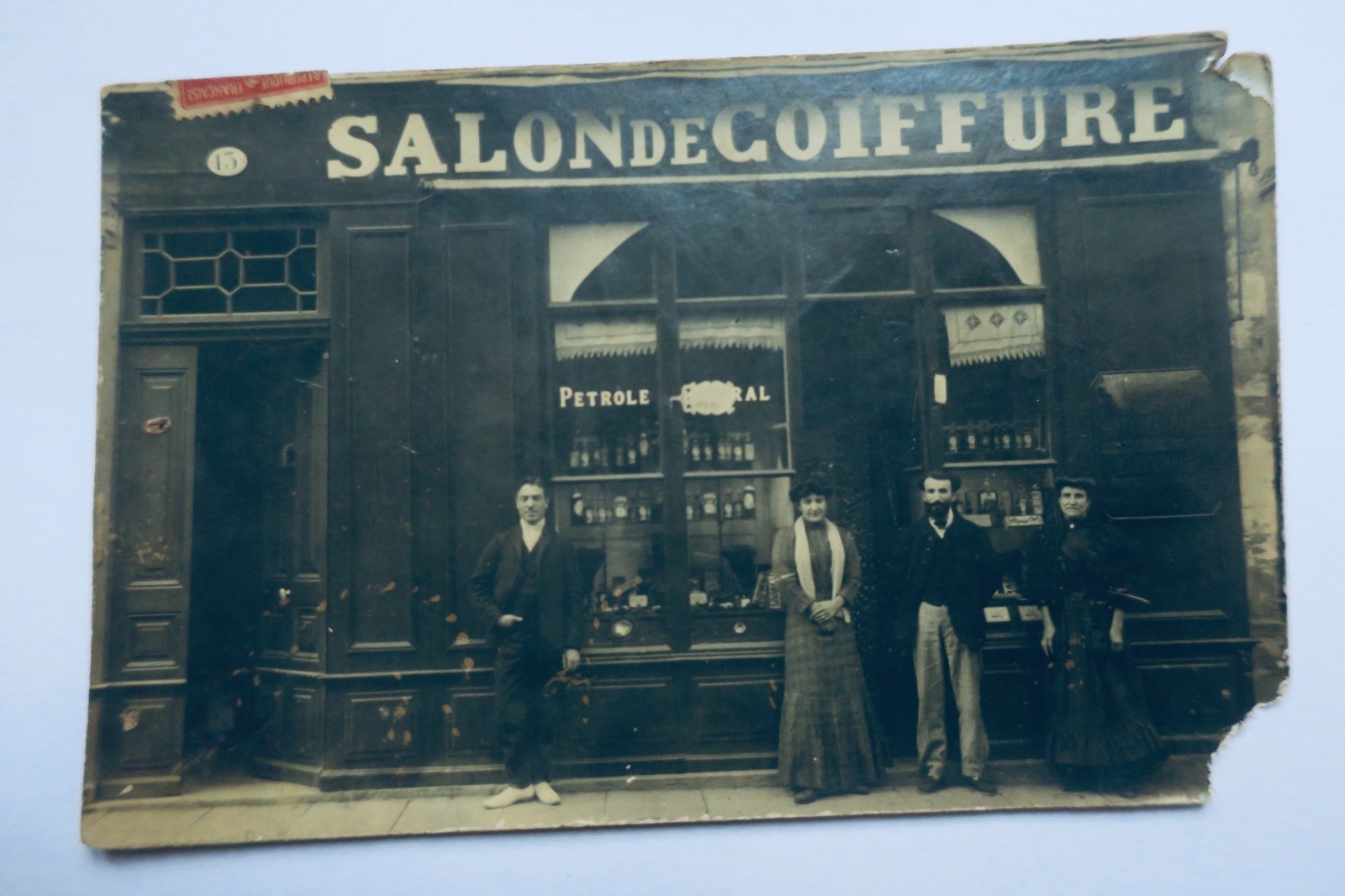 coiffeur SALON DE COIFFURE photo-carte 1906