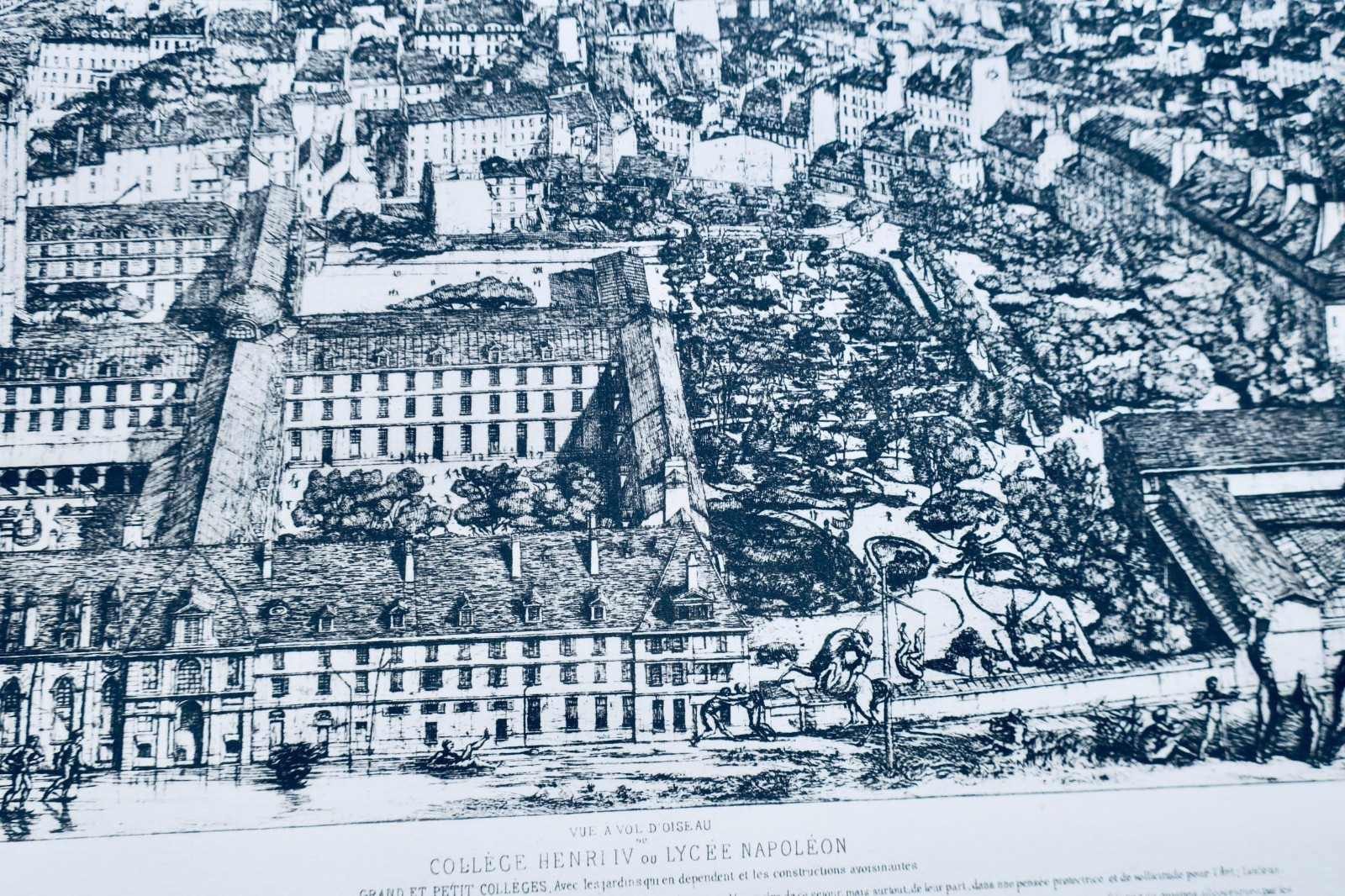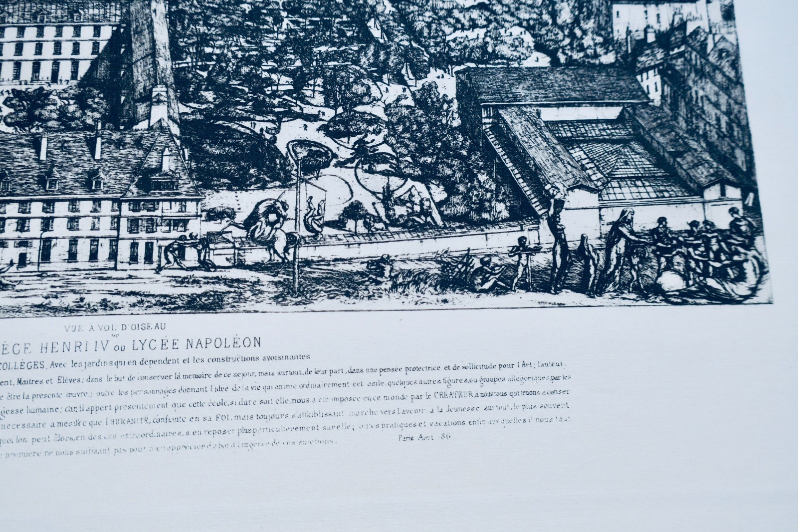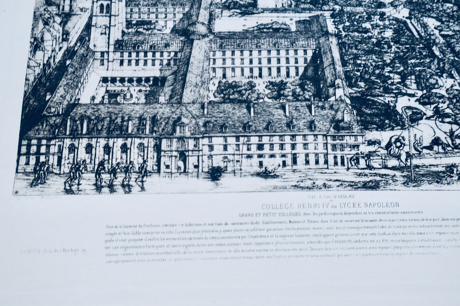 Collège Henri IV ou lycée Napoléon…1861 C. Meryon EAU-FORTE vue à vol d’oiseau