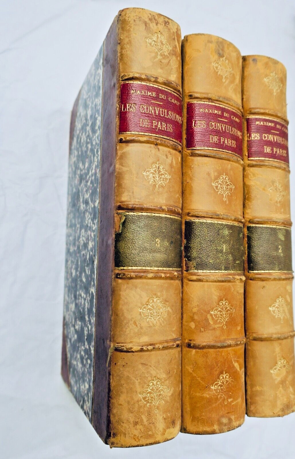 Paris, Hachette et Cie, 1878, 3 vol. in-8°, env. 543, 545 & 506 pp. quelques rousseurs, reliure demi-cuir à coins (épidermures, plats frottés T. I : Les Prisons pendant la Commune. T. II : Épisodes de la Commune. T. III : Les Sauvetages pendant la Commune.
