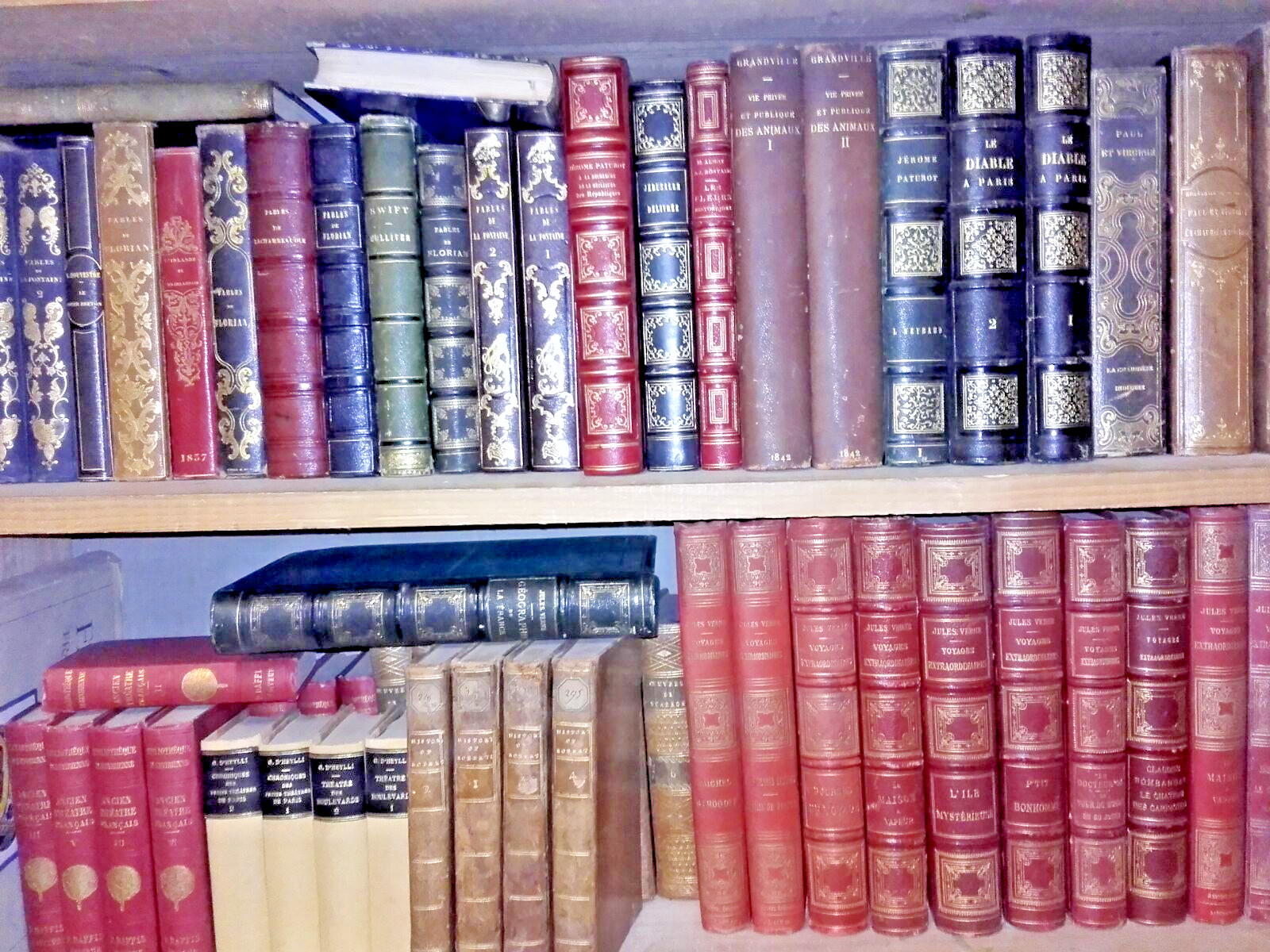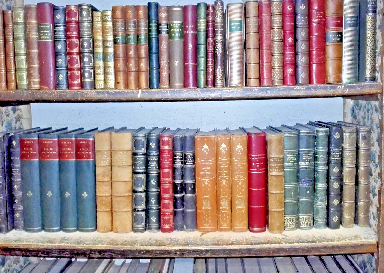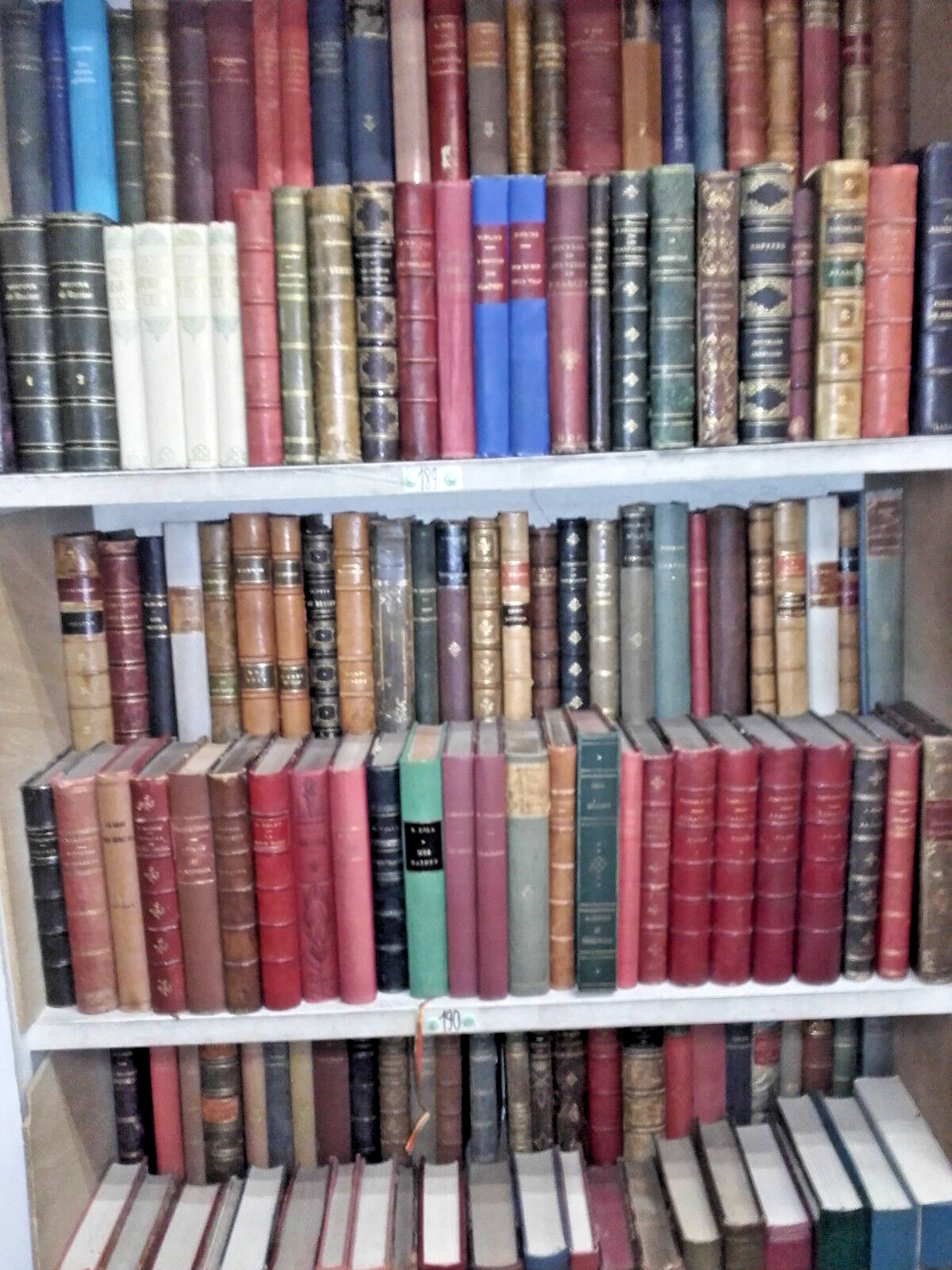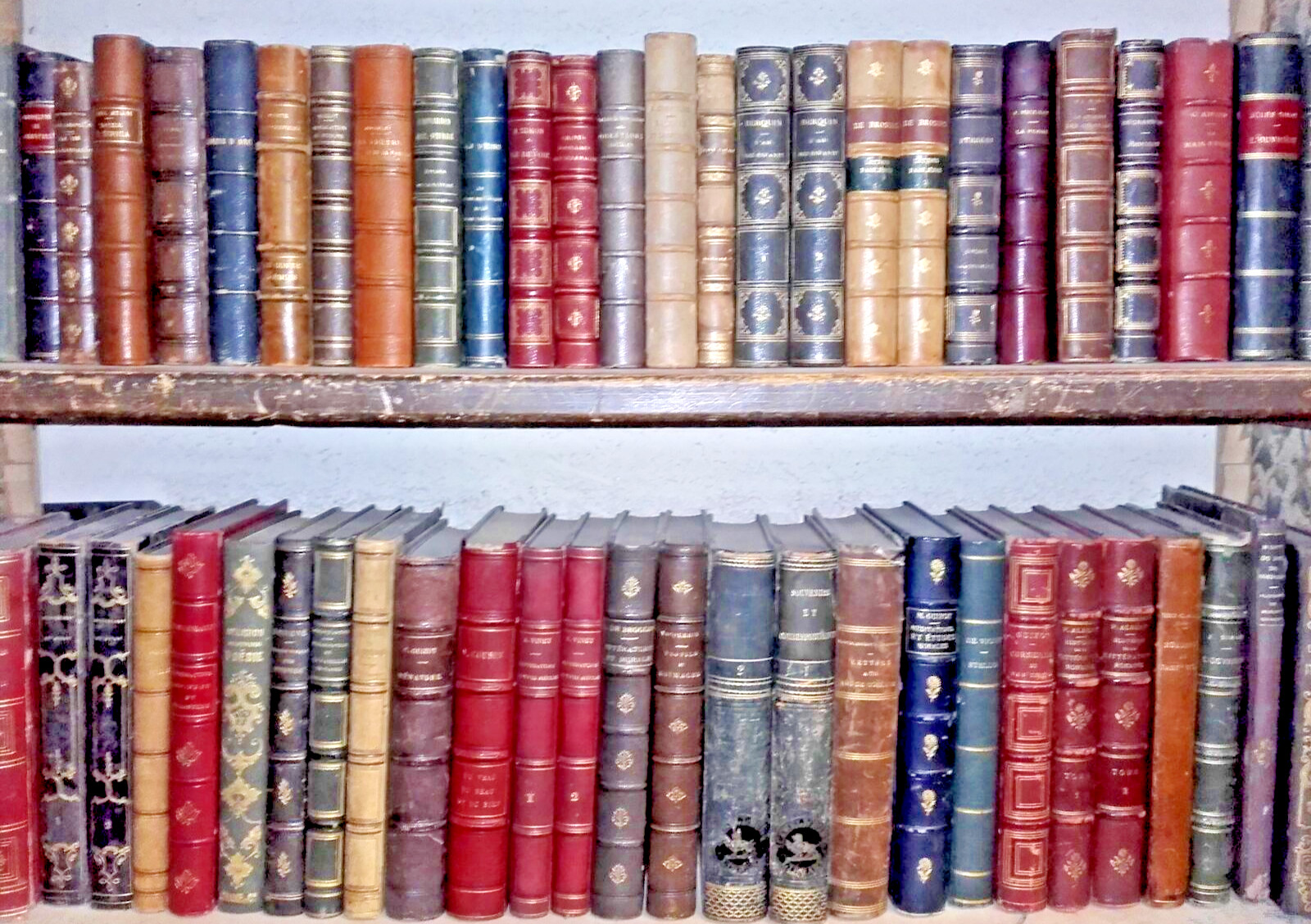 Nous vendons pour de la décoration des livres reliés en cuir de divers formats, le plus souvent en bel état ou très bel état, allant de la couleur verte, brun, rouge, beige, bleu… au noir, (si vous le souhaitez & à votre demande nous disposons aussi de livres à reliure cartonnée ou brochés plus simplement). Les livres datent du XVIIIème, XIXème & début du XXème siècle (compter environ 25 à 35 livres par mètre).