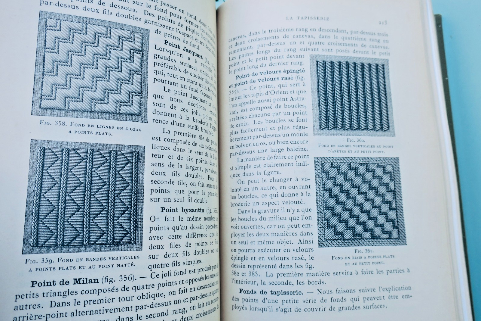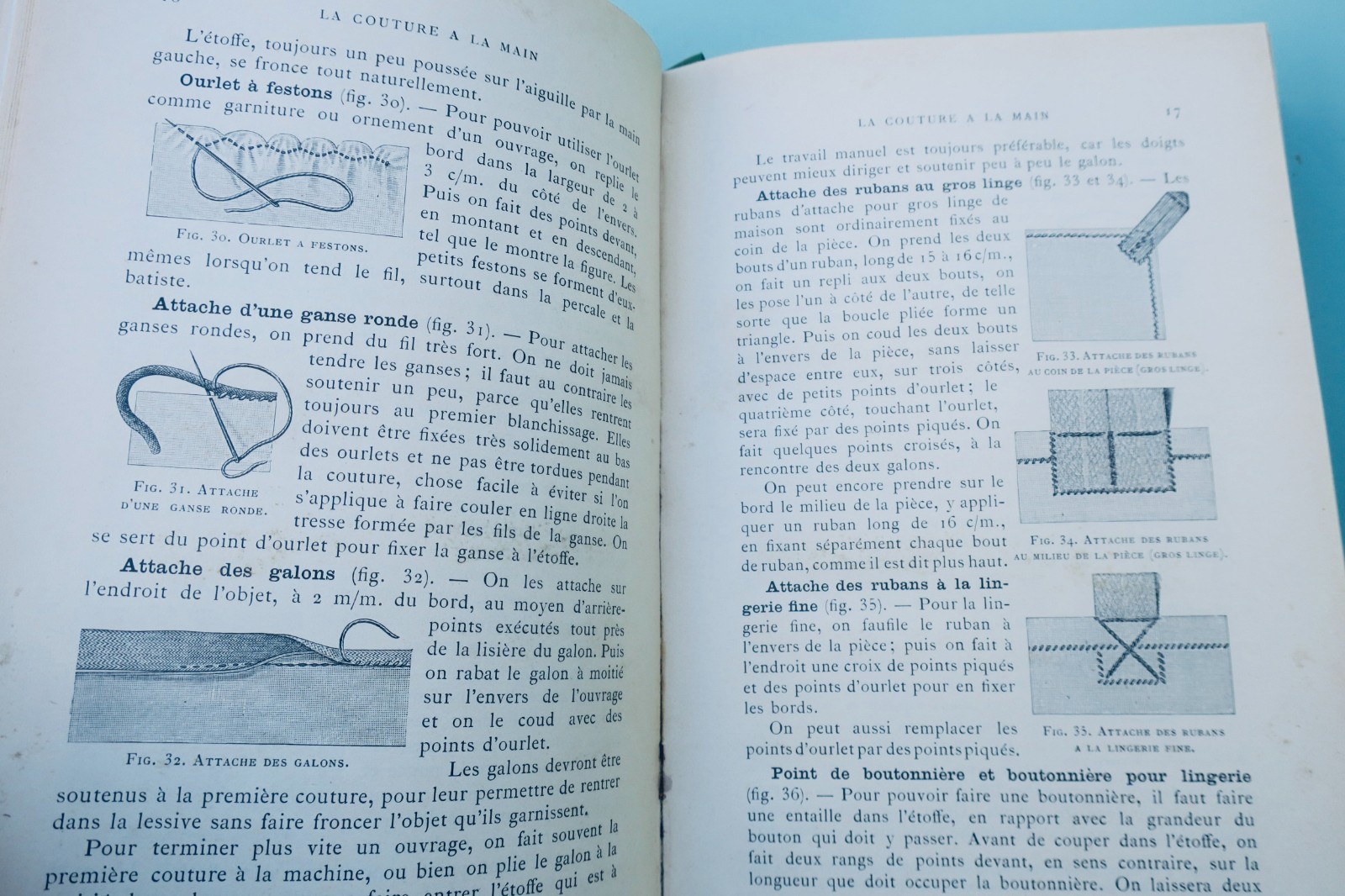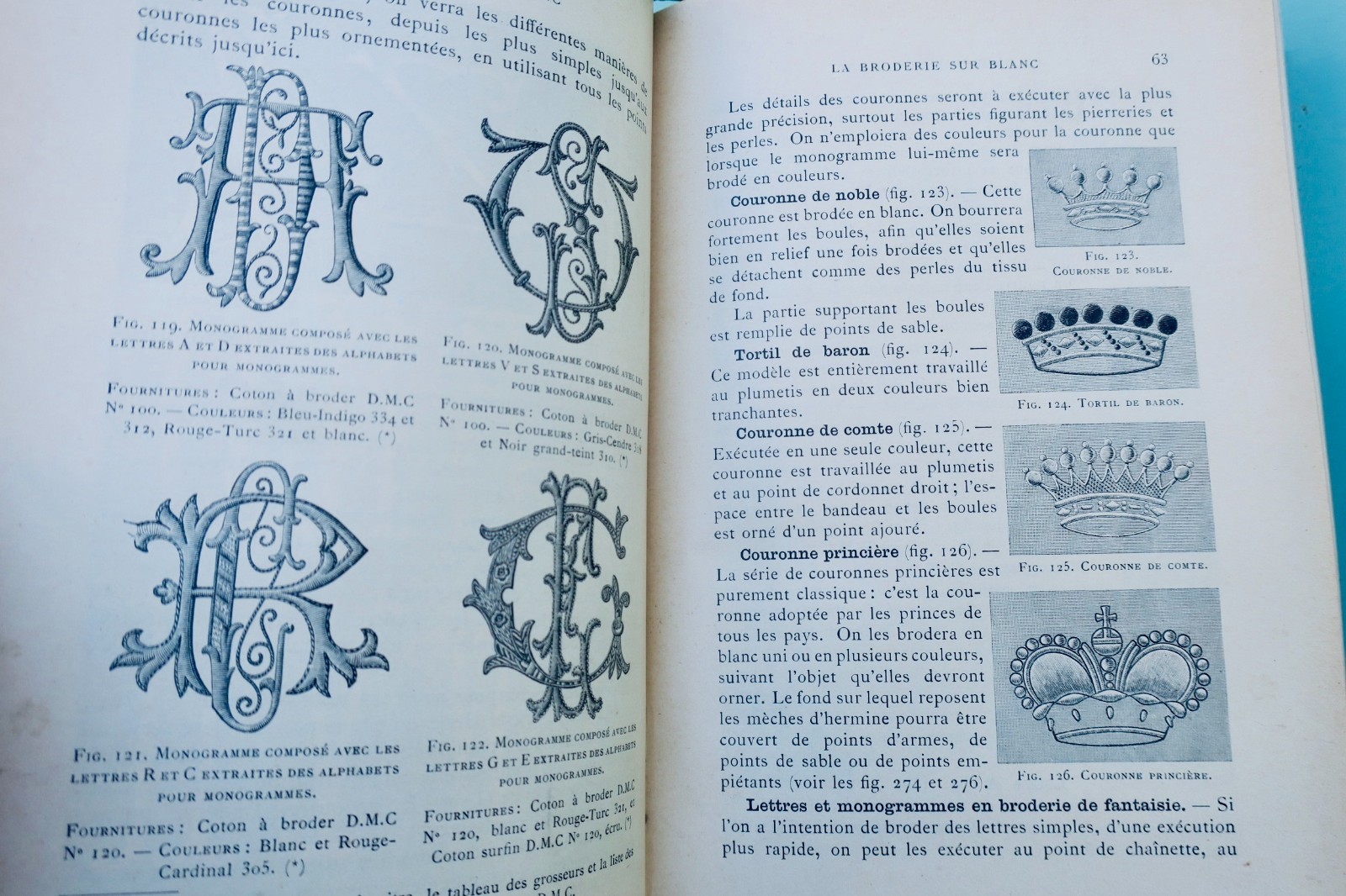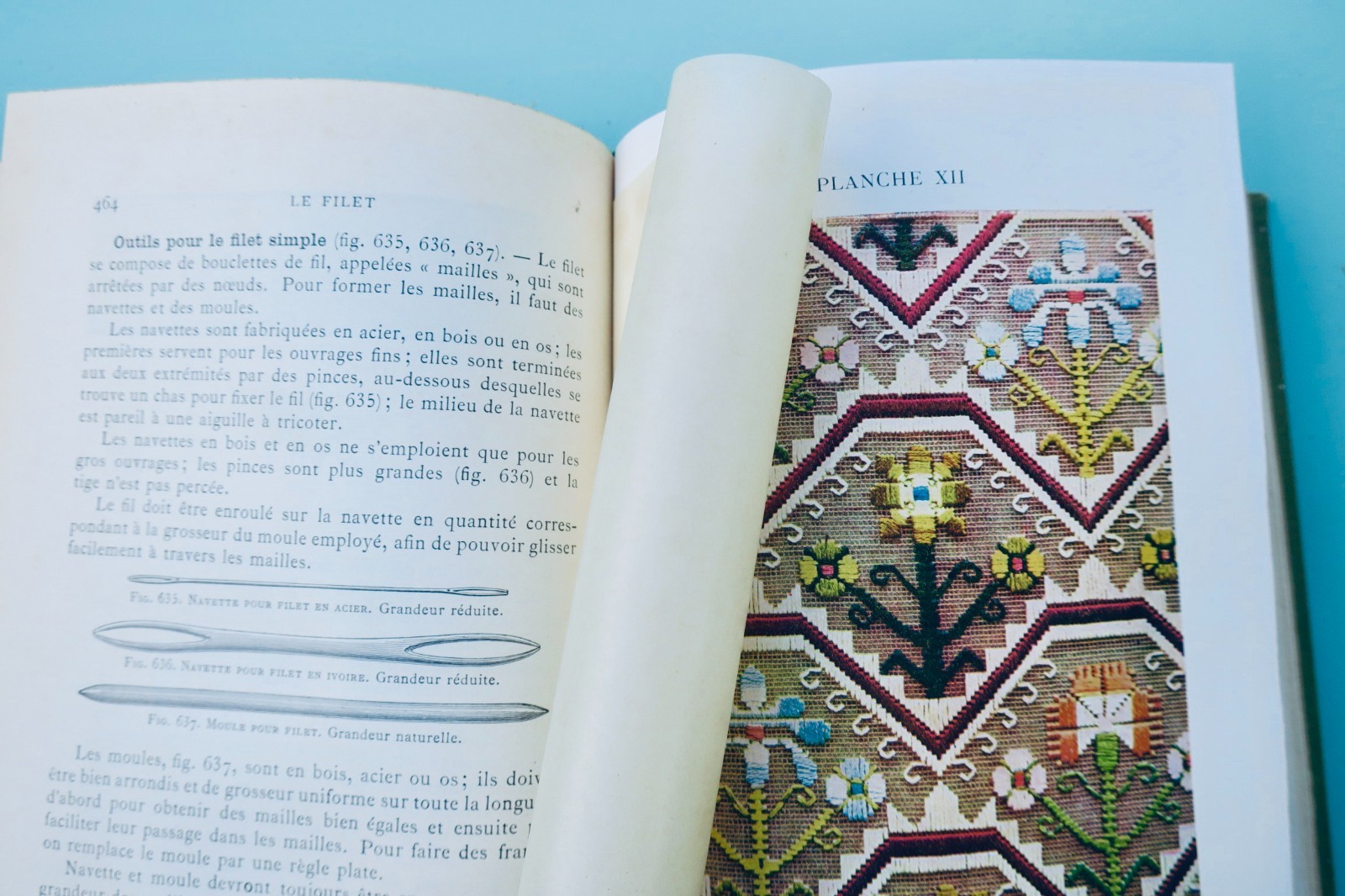 Dornach (Alsace), Th. de Dillmont, coll. « Bibliothèque D.M.C. « , vers1900, In-8°. Reliure de l’éditeur percaline (passée), 4-742 pp. tableau des couleurs et des grosseurs-catalogue 30 pp., 1087 figures, 17 planches en couleurs hors-texte sous serpentes. couture, raccomodage, Broderie, tapisserie, tricot, crochet, frivolité, macramé, jours, dentelles…