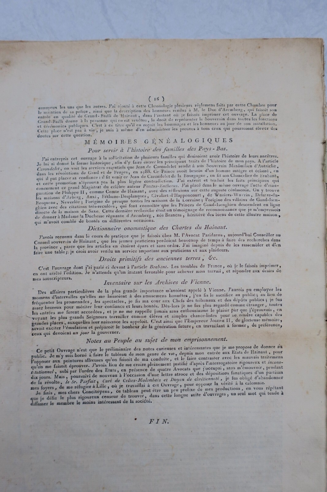 1794, in folio, reliure absente, 16 pp. sur vergé.