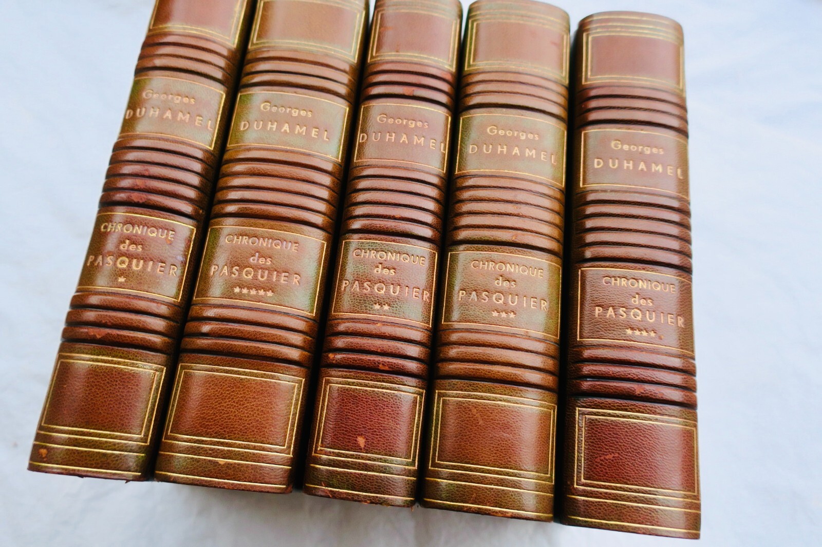 5 vol. in-8° carré, belle reliure demi-cuir à coins, dos à bourrelés (insolés), couvertures conservées, petites usures en coins, intérieur frais, tête doré.