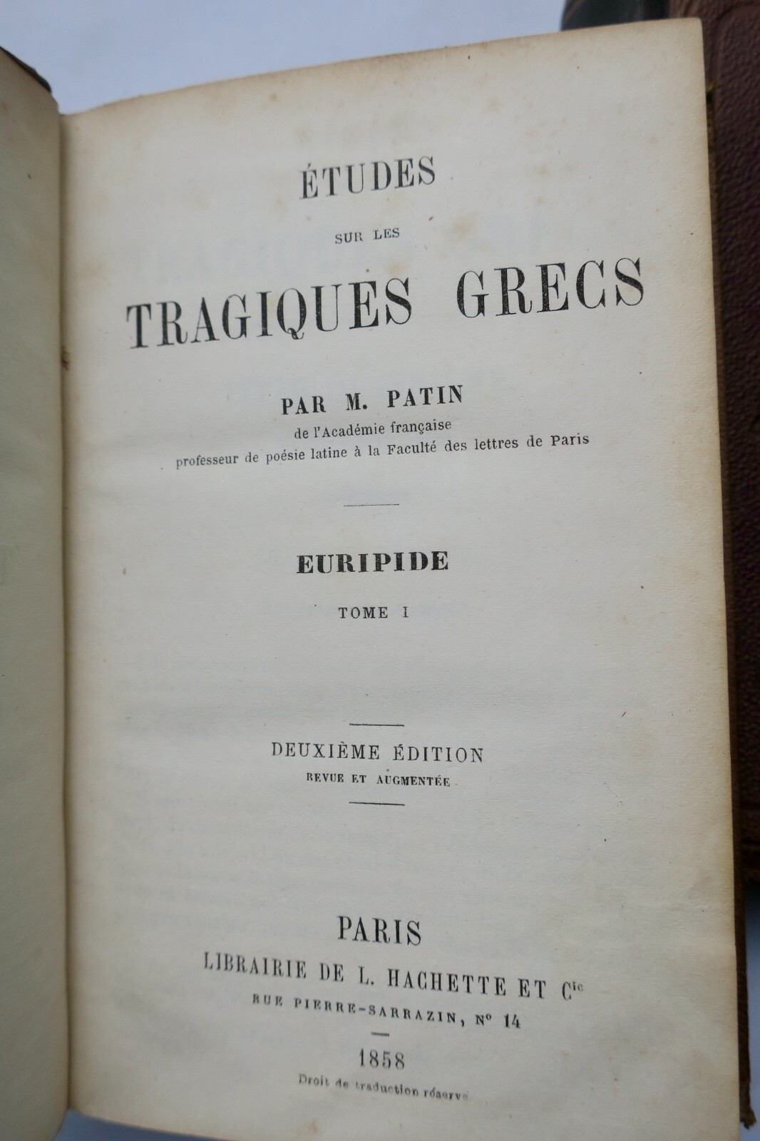 Paris, Librairie Hachette, 1858, 2 vol., bel reliure demi-cuir, 12 x 18 cm., 427 & 423 pp.