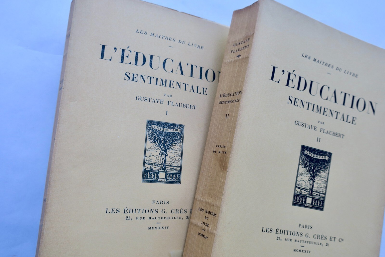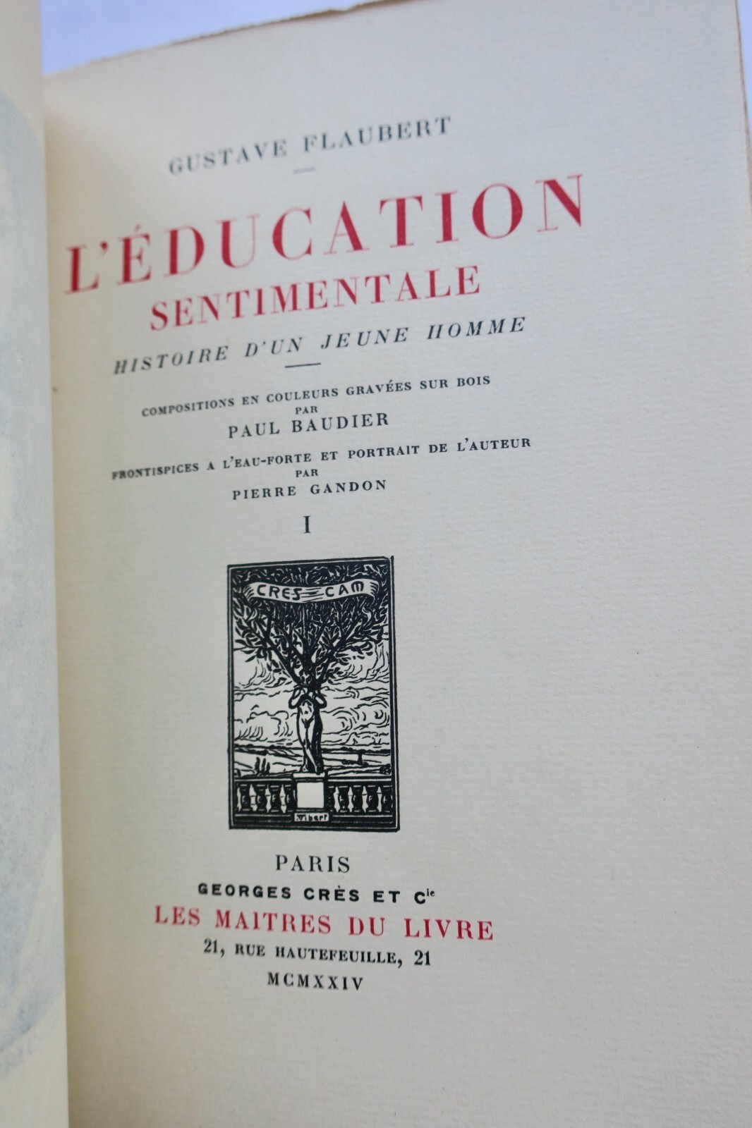 Georges Crès et Cie, Paris, 1924. 2 volumes brochés, couvertures rempliées illustrées, 361 pages [1] et 403 pages [2], avec des compositions en couleurs gravées sur bois par Paul Baudier. Frontispices à l’eau-forte et portrait de l’auteur par Pierre Gandon. Tirage numéroté, celui-ci, un des exemplaires numérotés sur papier de Rives. Collection »Les Maitres du Livre ».