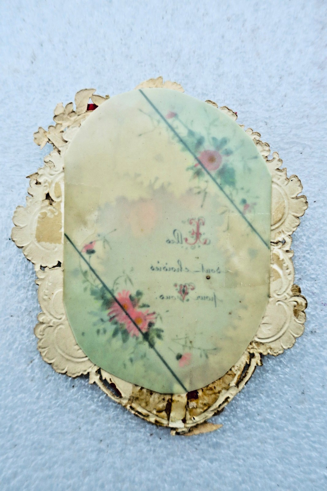Rose Prends mon coeur sous le ciel rose. affichette romantique bakélite. Vase & composition floral 85 x 200 mm. canivet composition floral 135 x 170 mm.
