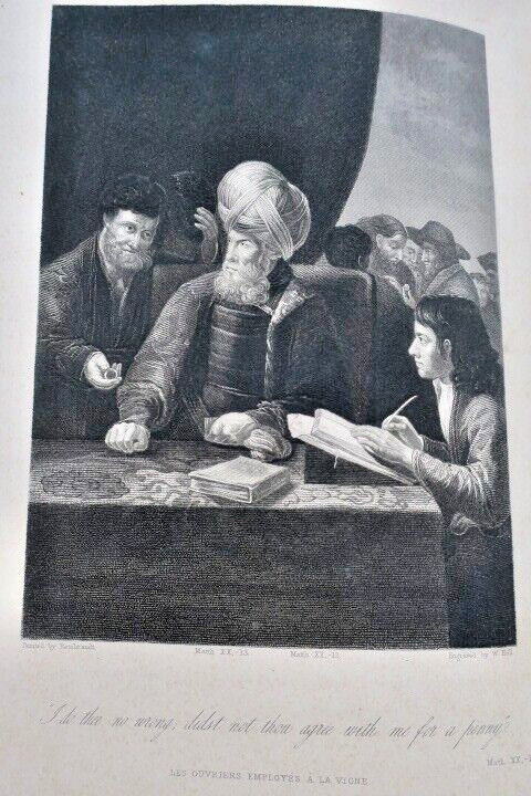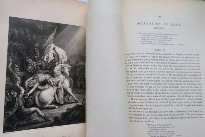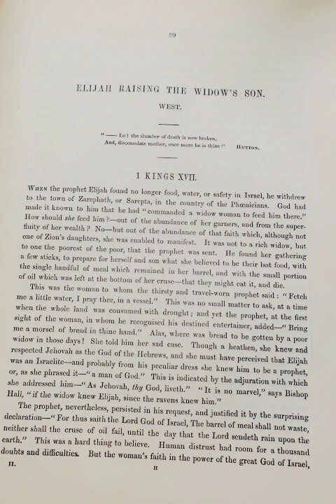 London: Peter Jackson, Late Fisher Son & Co, circa1860, belle reliure demi-cuir à coins, tranches dorées, quelques coupures aux dos, coins frottés, quelques rares et discrètes rousseurs. 21 x 27 cm., plus de 200, jolies gravures sur papier fort. Beautiful engravings of religious paintings by well known artists; the illustrations are accompanied by text giving the religious context,
