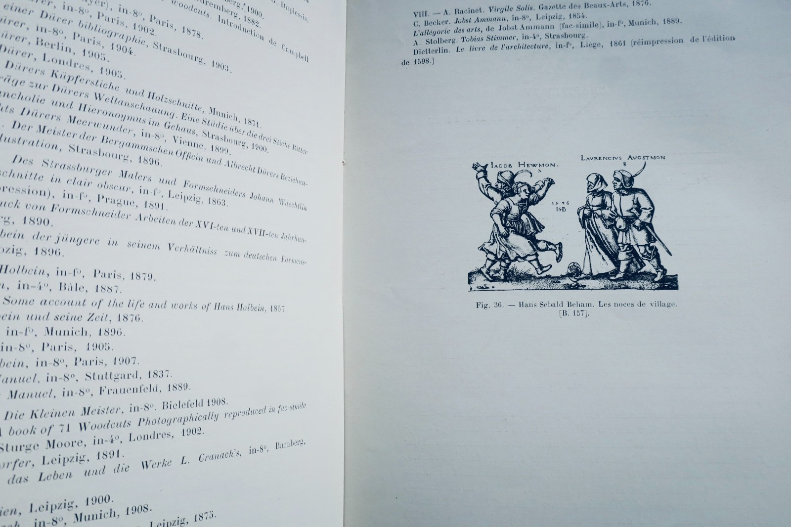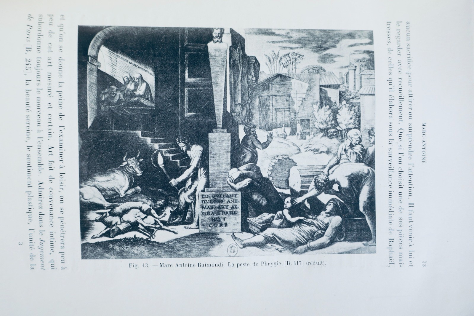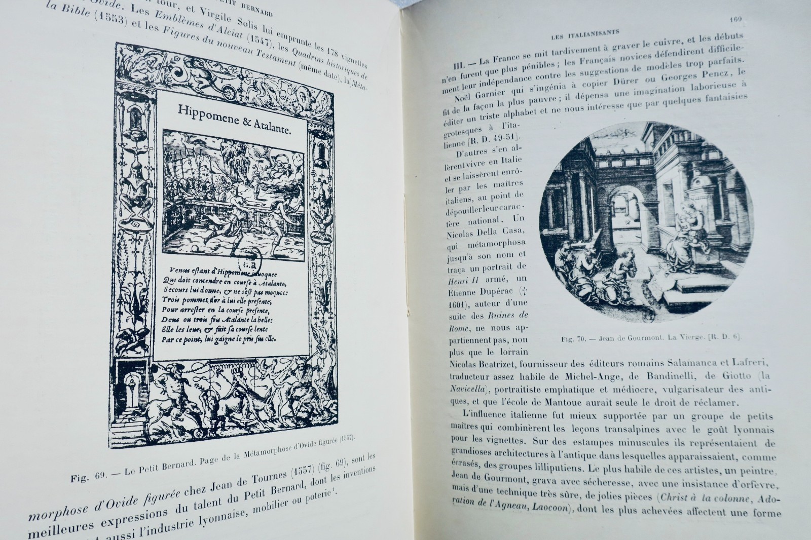 Renouard – H. Laurens, Paris, 1909, in 8°, broché, manque la couverture, (petites coupures en page de garde), IV & 472 pp., illustré de 174 gravures, les origines. La gravure en italie, Allemagne, Flandres, France, Angleterre. L’ estampe original française, l’ illustration française du livre…