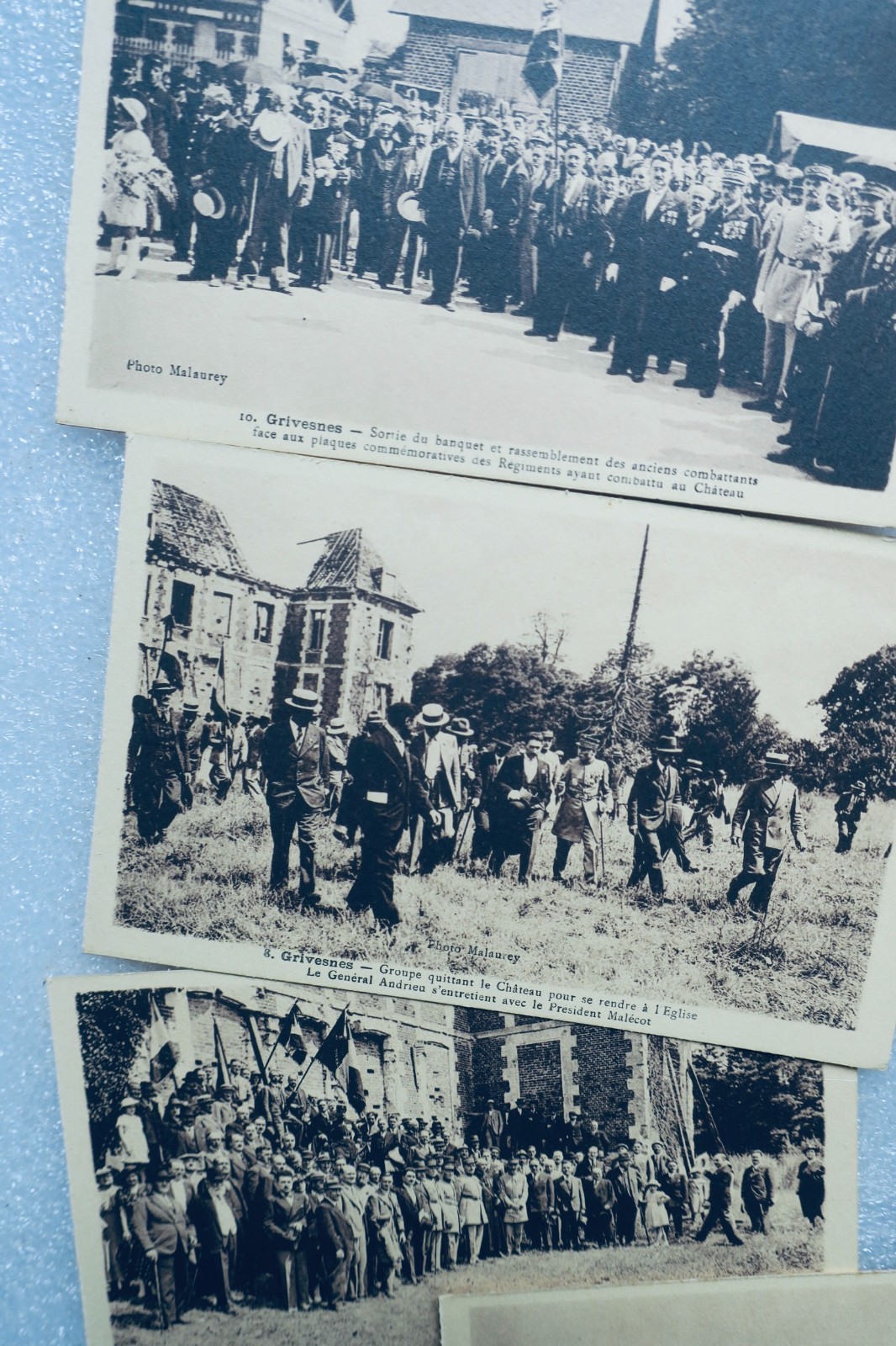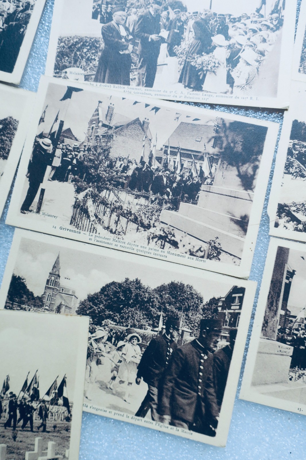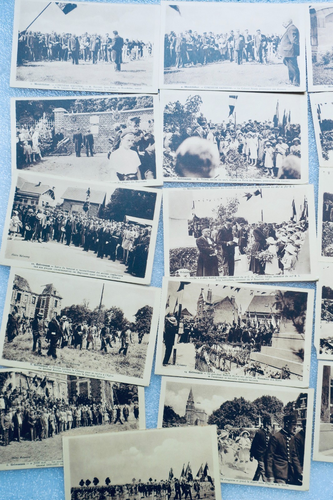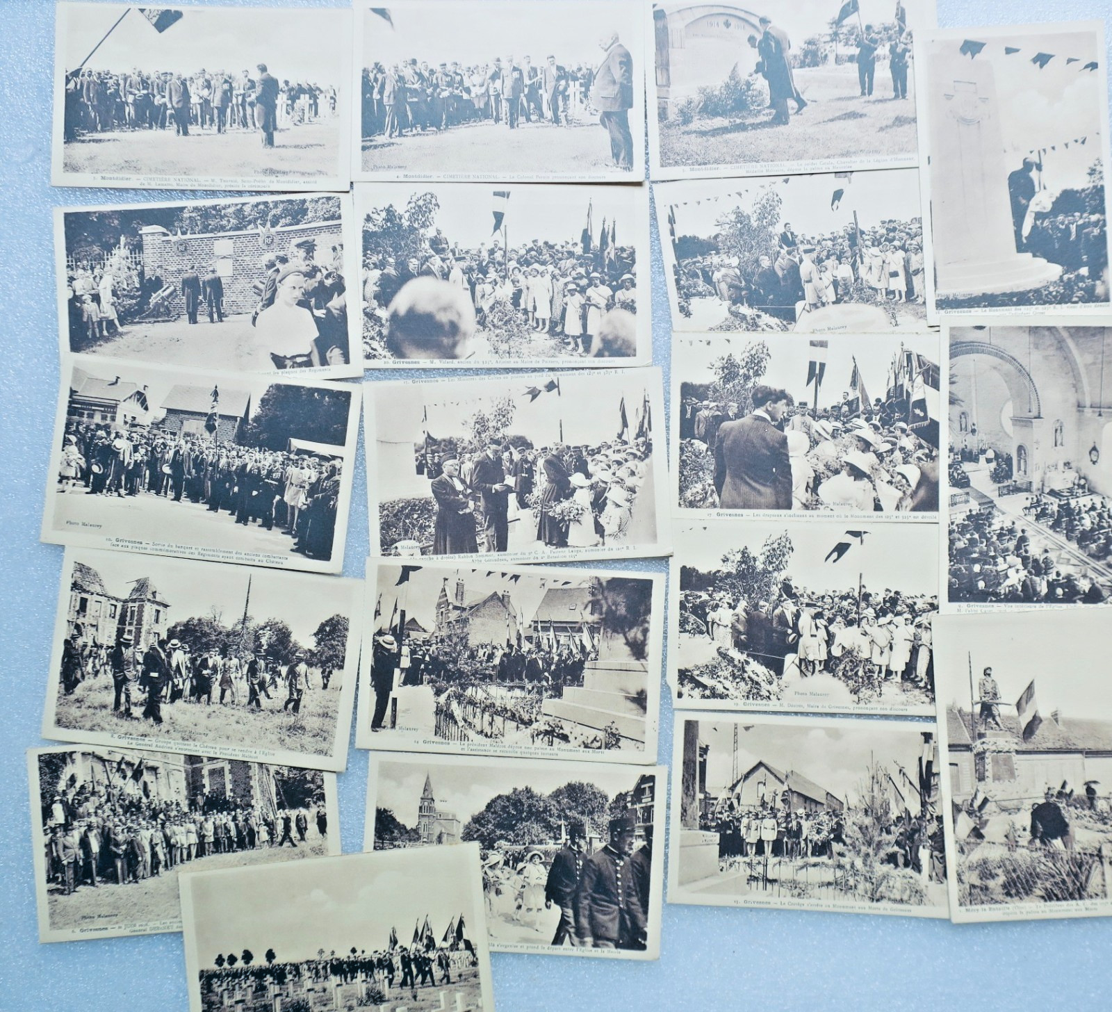 19 cartes postales 16 de Grisvenes, 3 de Mondidier & une Méry la Bataille