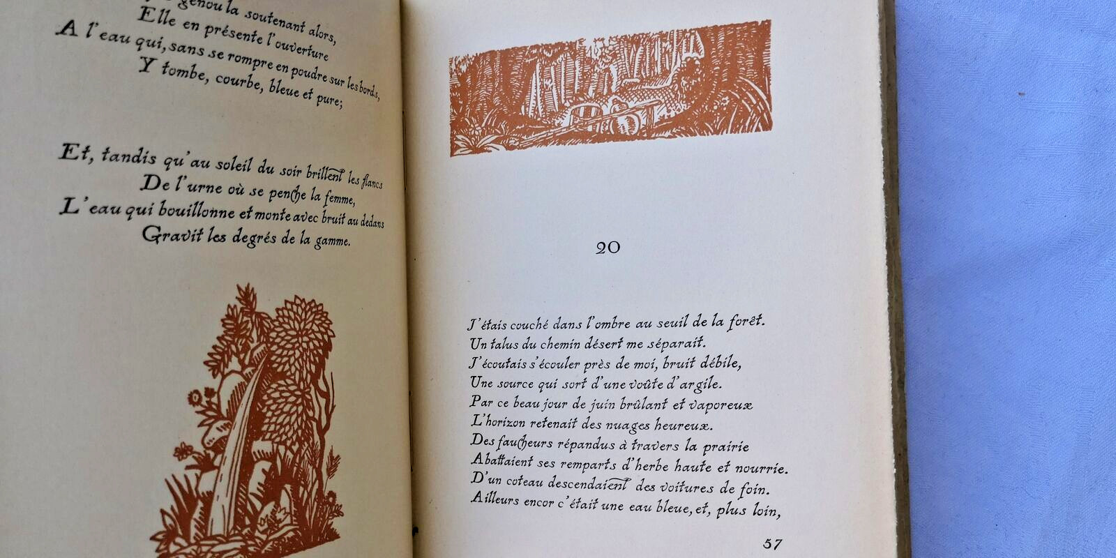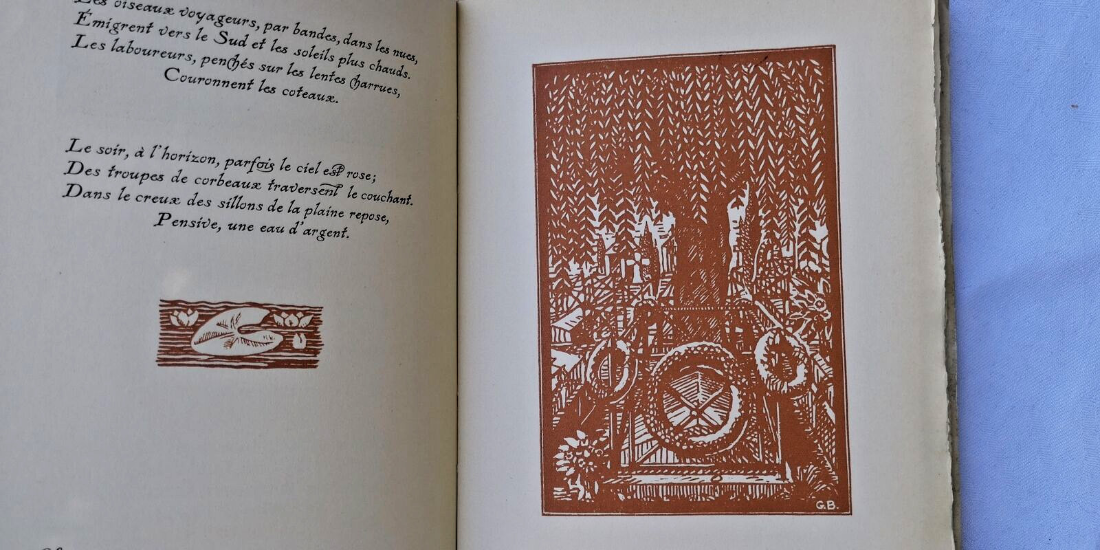Paris, René Kieffer, “L’Amour des Livres”, 1926, 176 pp. ; illustrations de couleur in texte: nombreuses vignettes en bandeaux et culs-de-lampe, 7 à pleine page (comprises dans la pagination). Recueil de poésies du poète lorrain (1873-1907), illustré de dessins de BRAUN. Tirage à 1050 exemplaires; 1 des 1000 sur vélin teinté de cuve