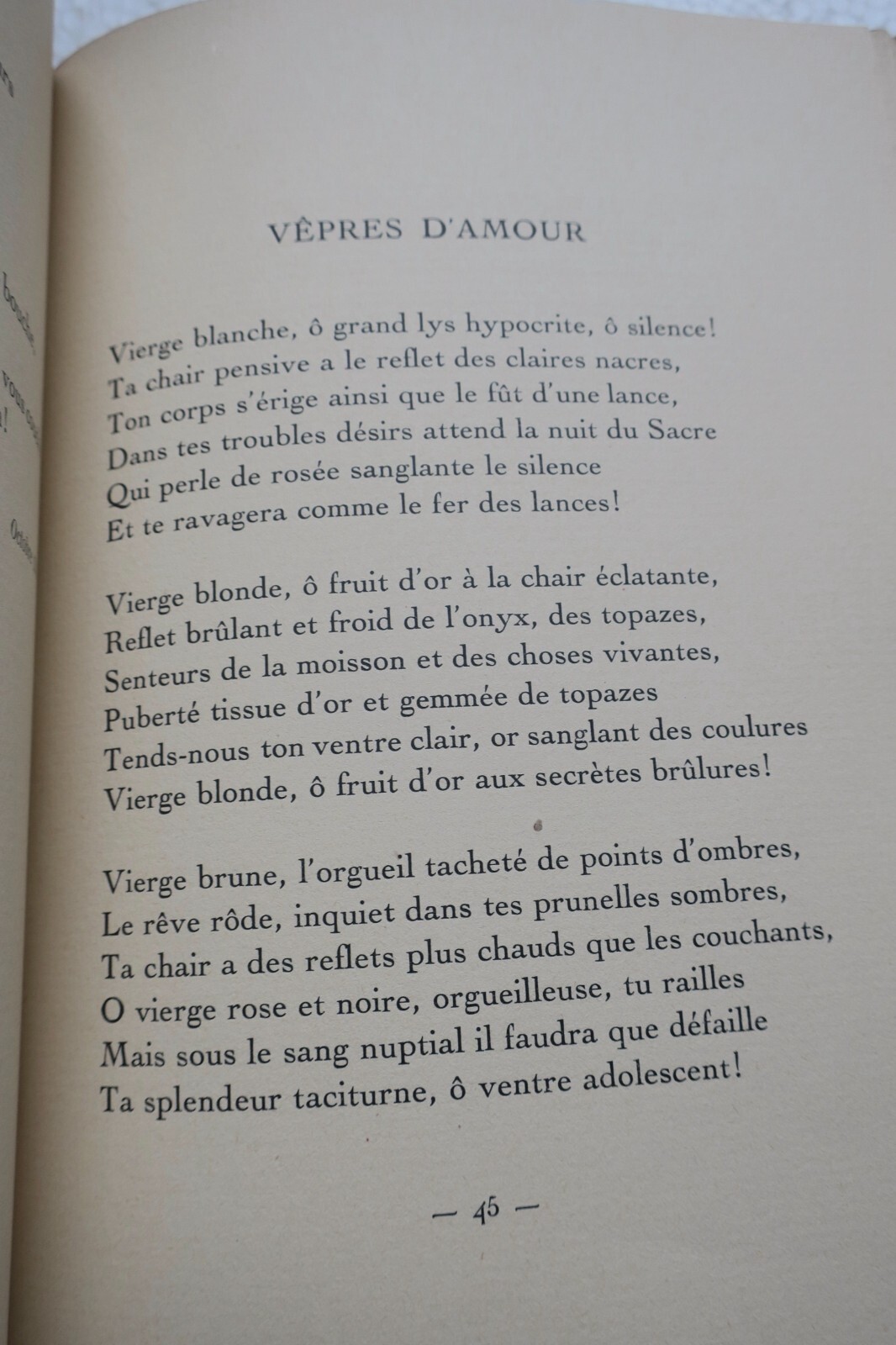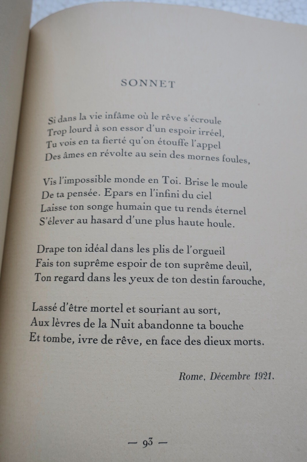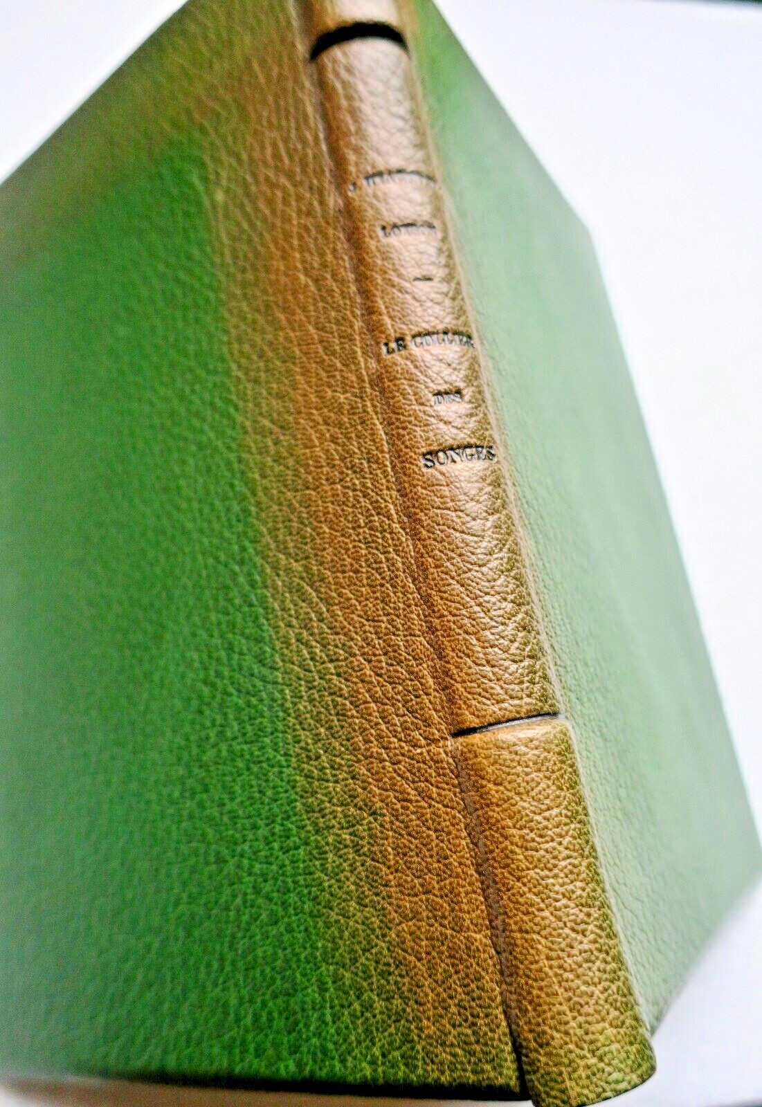 Librairie de France Paris, 1926, in 4°, 110 pp. Portrait frontispice par Charles Léandre. Edition originale de ce recueil de poèmes. in-8°, belle reliure plein maroquin (insolée) à double saillants au dos, couvertures et dos conservés, tête dorée, intérieur frais sur papier vergé