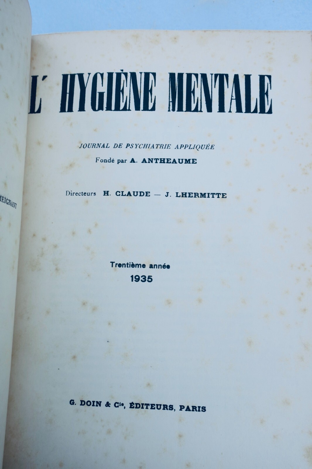 L’hygiène mentale journal de psychiatrie appliquée n°1 XXXe année, 1935 10 numéros