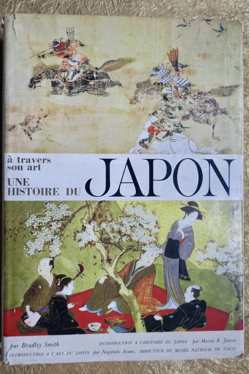 Robert Laffont 1965 -, Paris In-folio 295 pp. Introduction à l’histoire du Japon par Marius B.Jansen, introduction à l’art du Japon par Nagatake Asano, directeur du Musée National de Tokyo. Sous jaquette illustrée en couleurs (petites coupures). Reliure pleine toile marron d’éditeur frappée du titre en idéogrammes japonais dorés. Illustré d’une importante iconographie en couleurs dans et hors texte. L’ouvrage est divisé en 10 périodes allant de l’époque archaïque jusqu’à celle de Meiji, chacune précédée d’une chronologie historique et artistique.