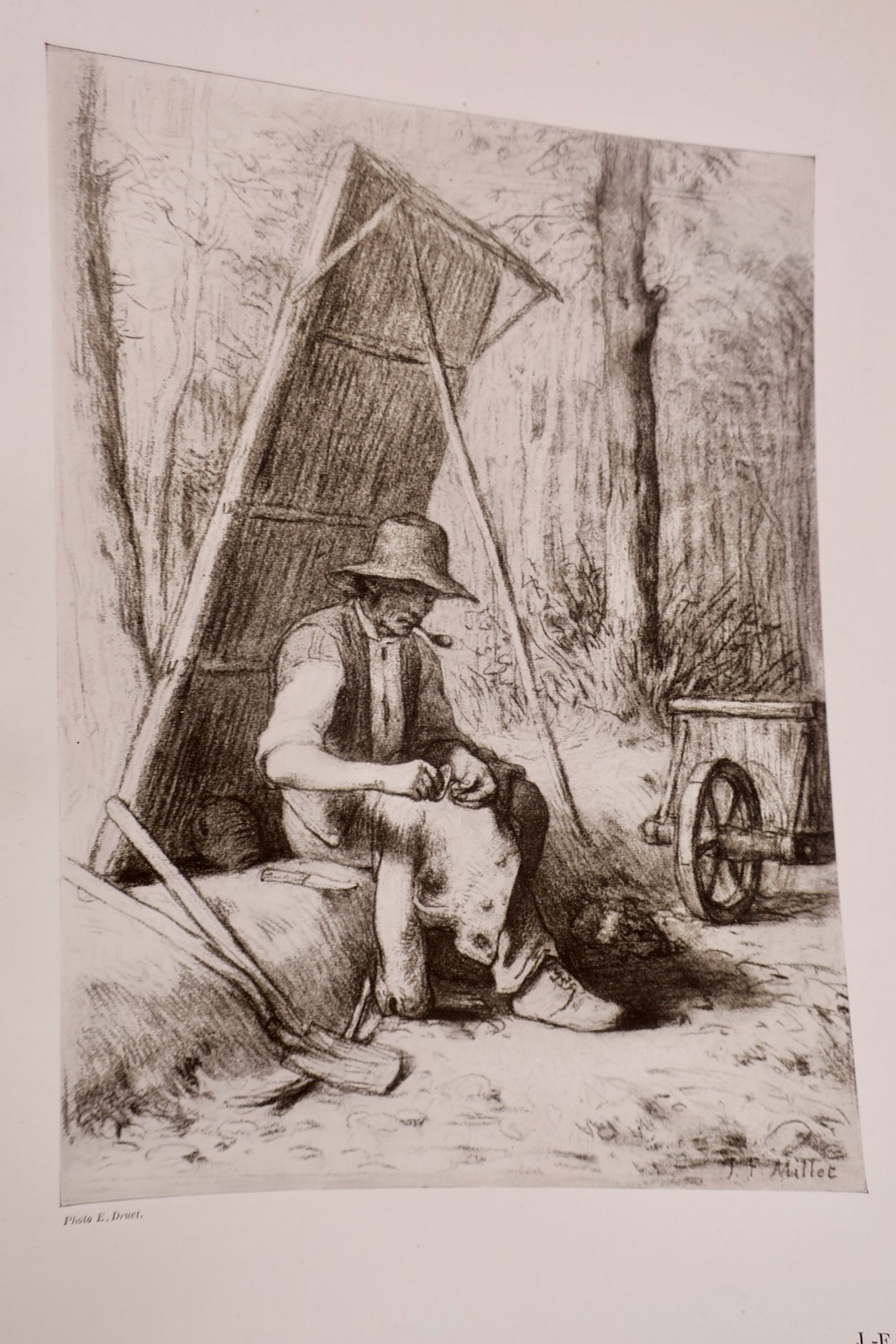 Goupil & Cie, Imprimeurs-éditeurs. edition a tirage limite. Broche, (en l’état : manque la page de titre, la couverture, les pages de garde, intérieur bel état par ailleurs), 44-176 pp. (catalogue descriptif), nombreuses planches en noir a pleine page hors texte sous serpente légendée. Boudin, John-Lewis Brown, Cals, Mary Cassatt, Cézanne, Chaplin, Corot, Courbet, Daumier, Decamps, Degas, Delacroix, Deveria, etc.