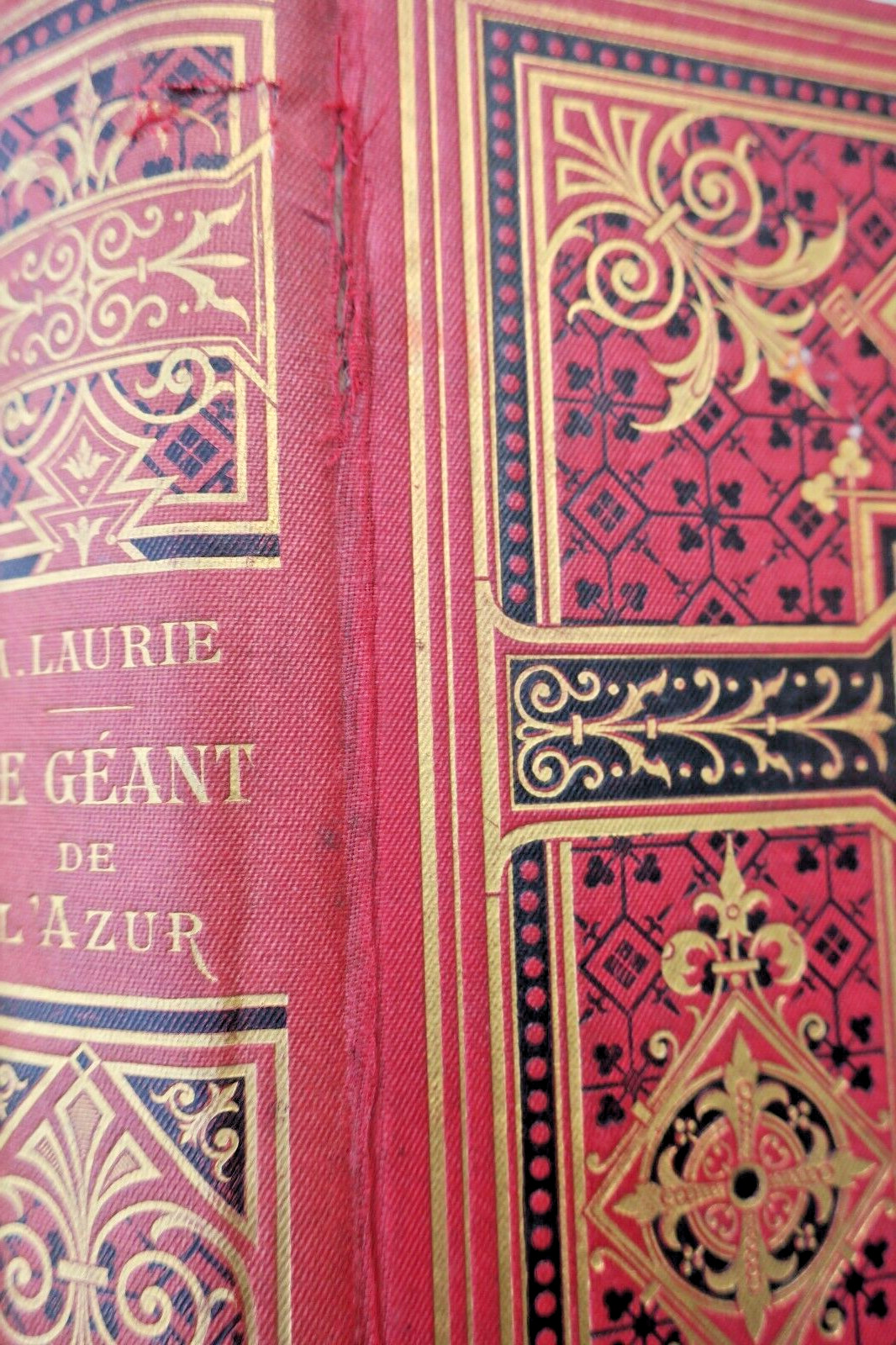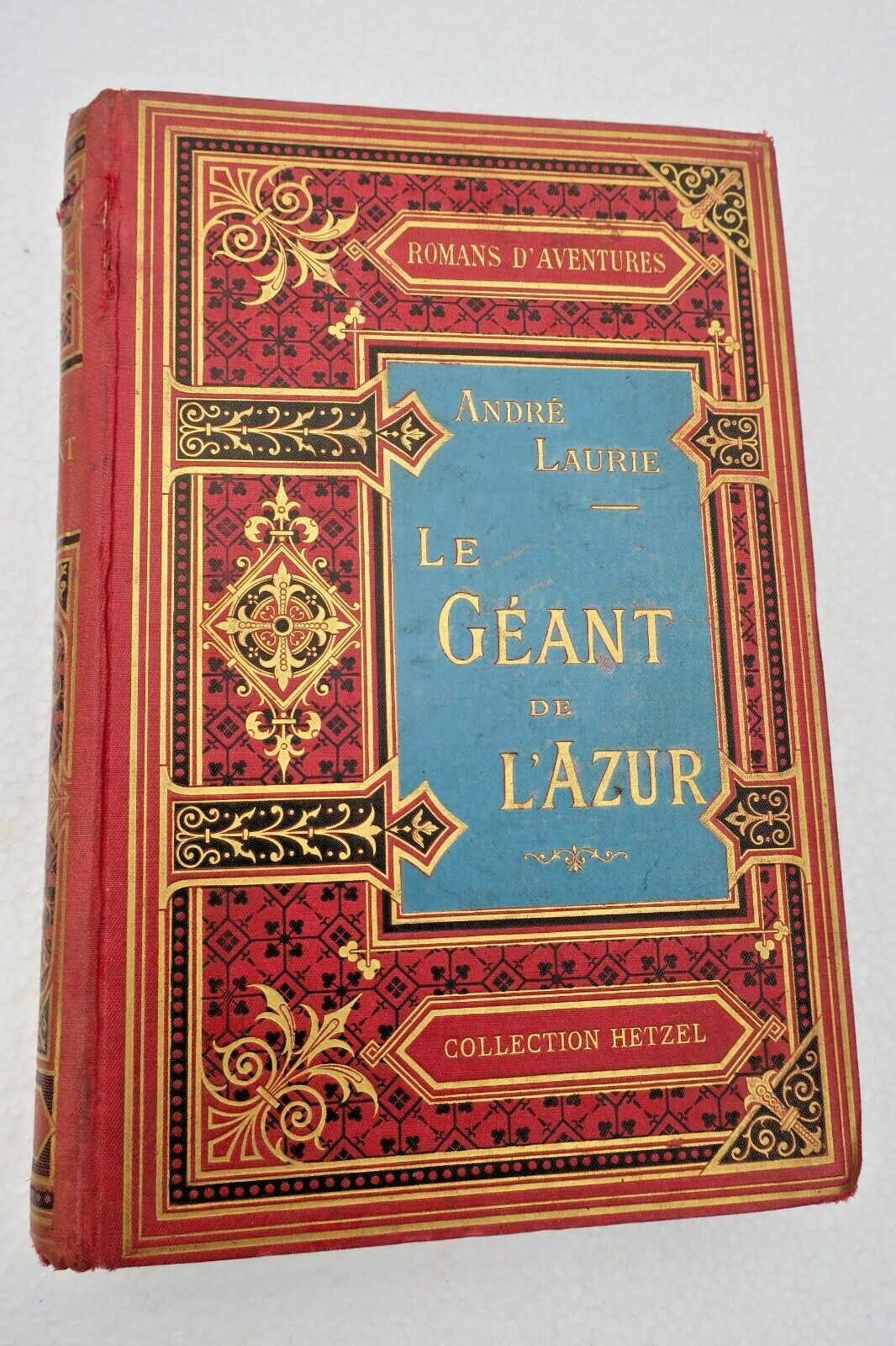Paris, Collection Hetzel, Romans d’aventures, sans date [1904]. Grand in-8°, 330 pp.. Joli cartonnage décoré de l’éditeur, tranches dorées, cahiers légèrement décalés, coins émoussés, usures en coiffes, uns fissure de 5 cm au niveau d’un mors ainsi qu’une petite coupure mais sans manque au dos, quelques discrètes rousseurs.