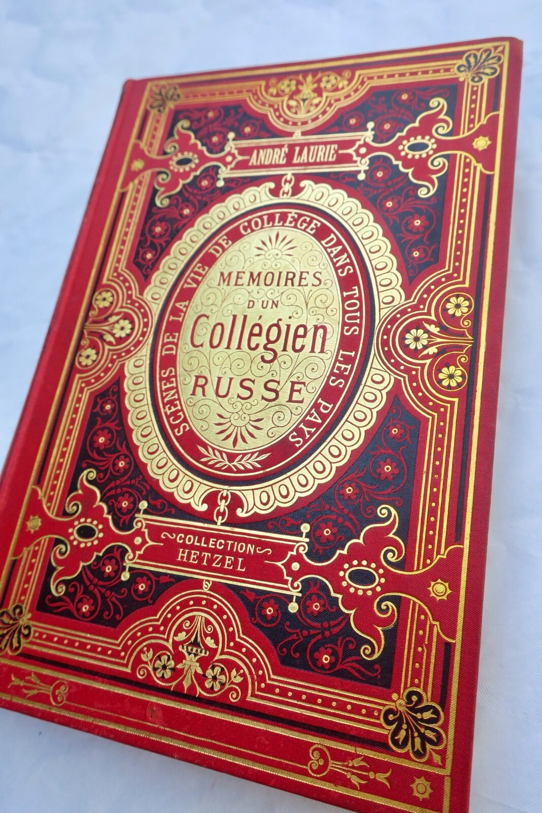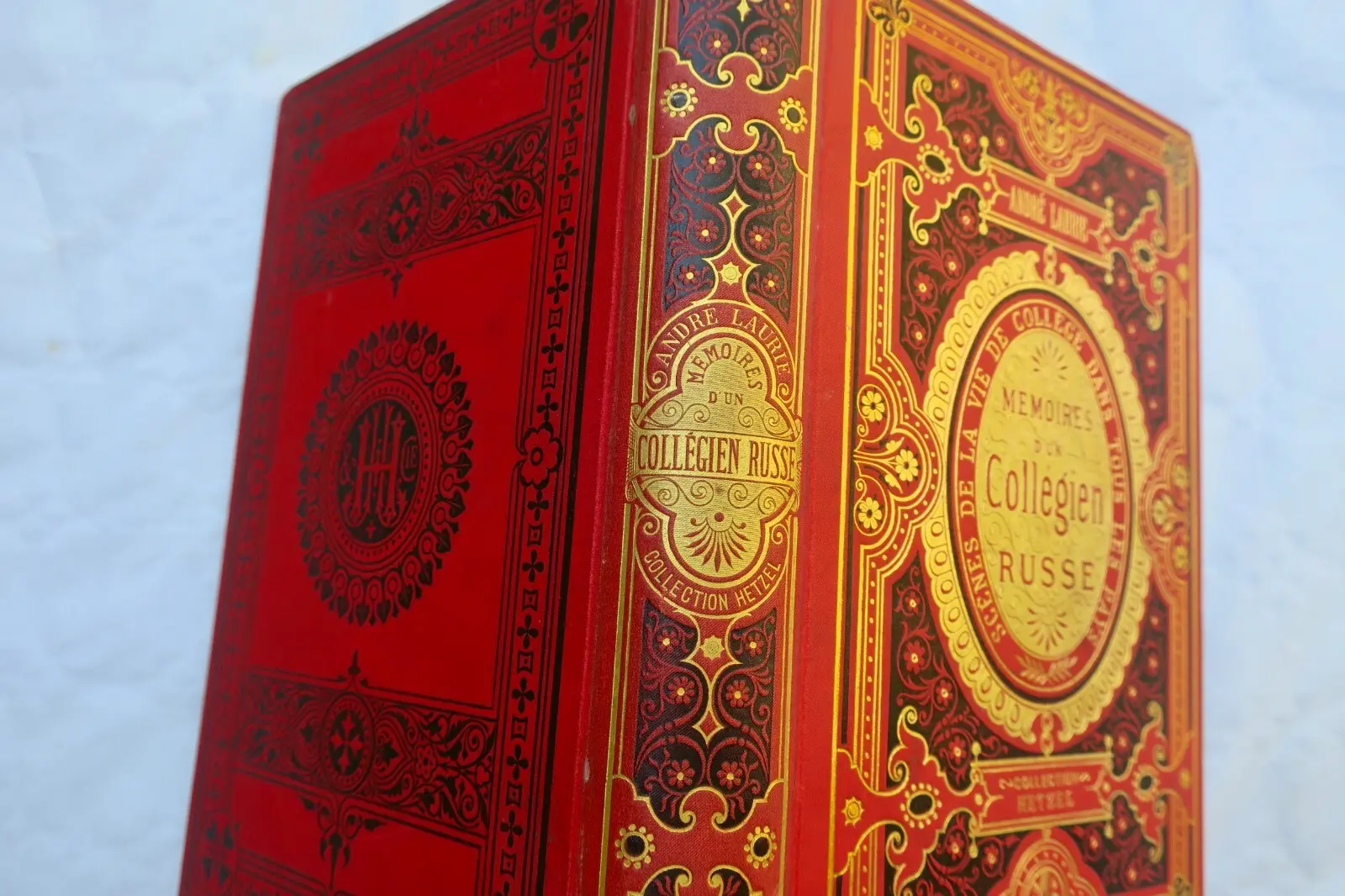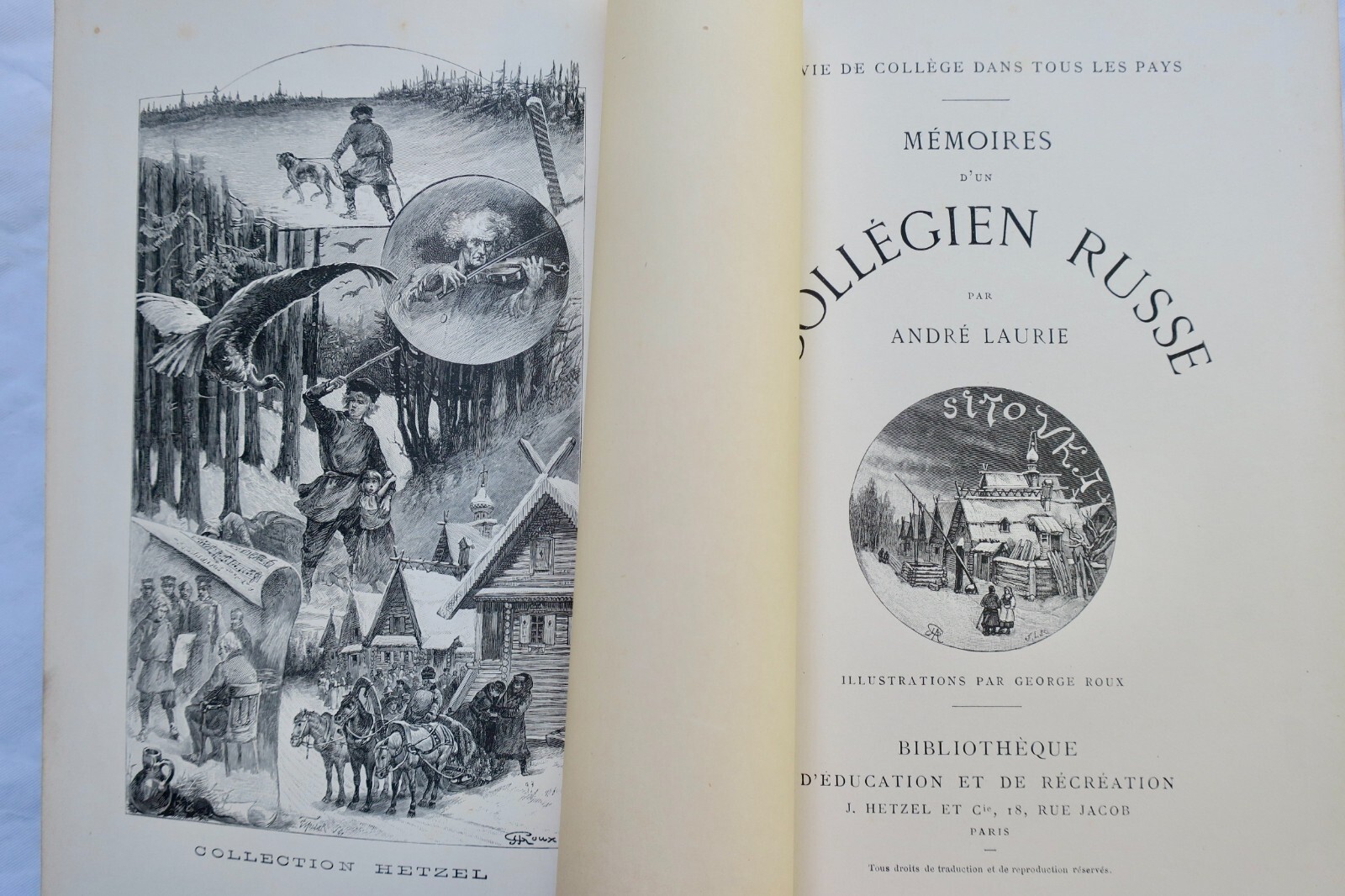 Paris, Hetzel, Bibliothèque d’Éducation et de Récréation, Collection « la vie de collège dans tous les pays », (s.d. vers 1889), in 8°, superbe reliure percaline, tranches dorées, 316 pp., catalogue EV in fine, quelques rares rousseurs, quelques feuillets légèrement décalés. Ouvrage illustré en noir/blanc par George Roux