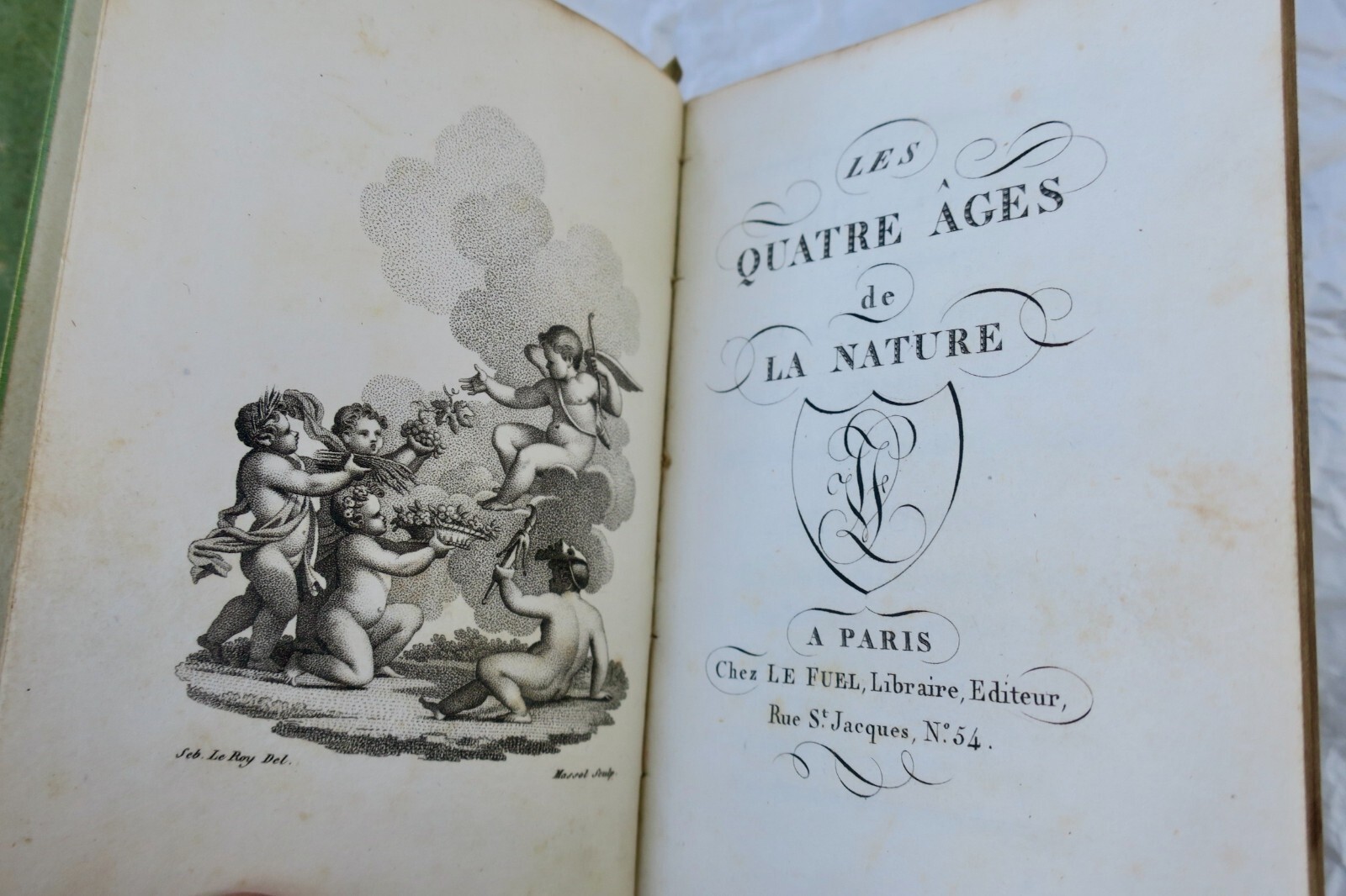 Paris, Le Fuel, sans date. In-12, , reliure cartonnée, (dos manquant), tranches dorées, sous étui (abimé), 120 pp., orné de 5 gravures de Le Roy