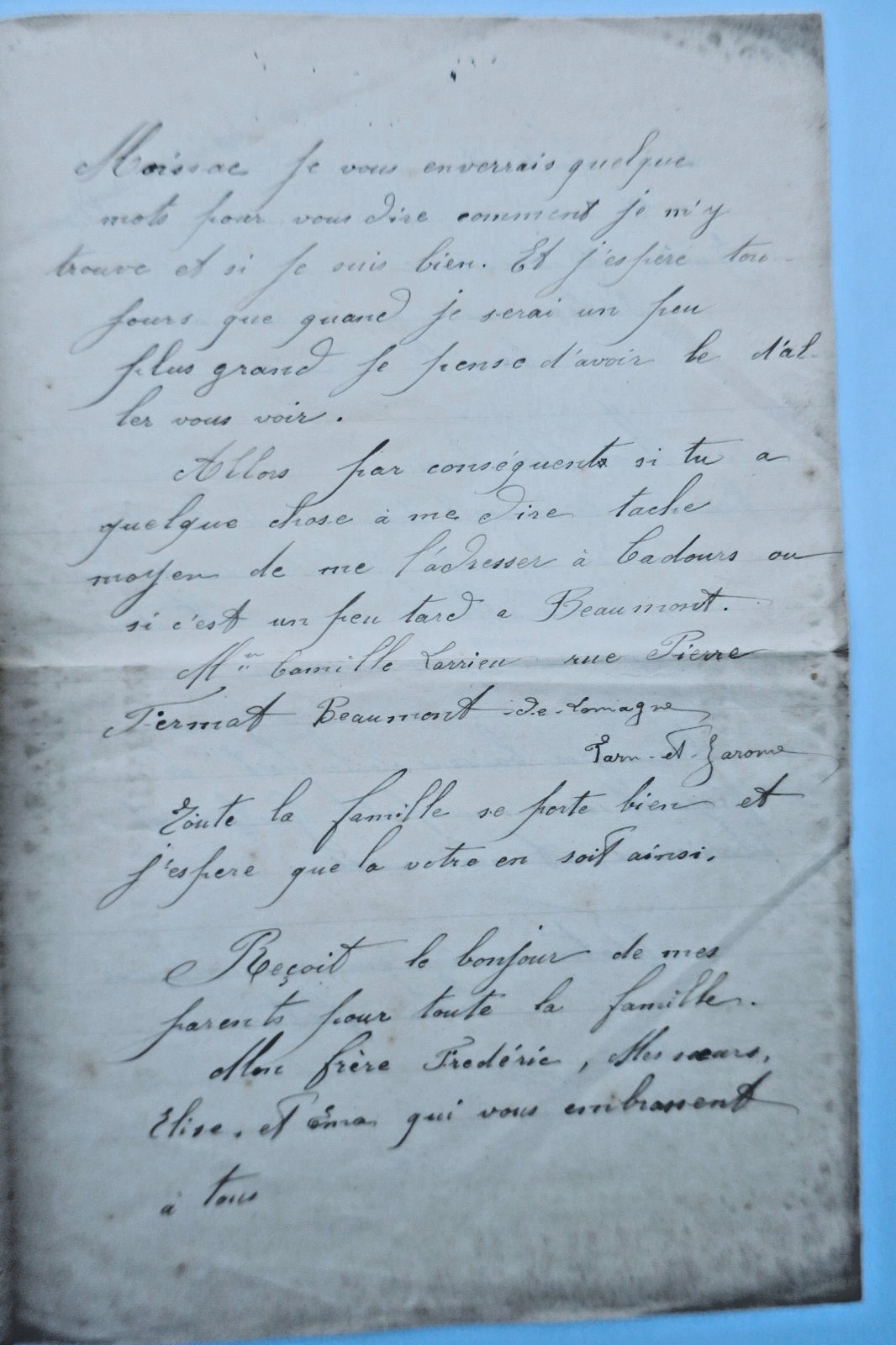 Jolie lettre de Mlle Camille Larrieu à son cousin