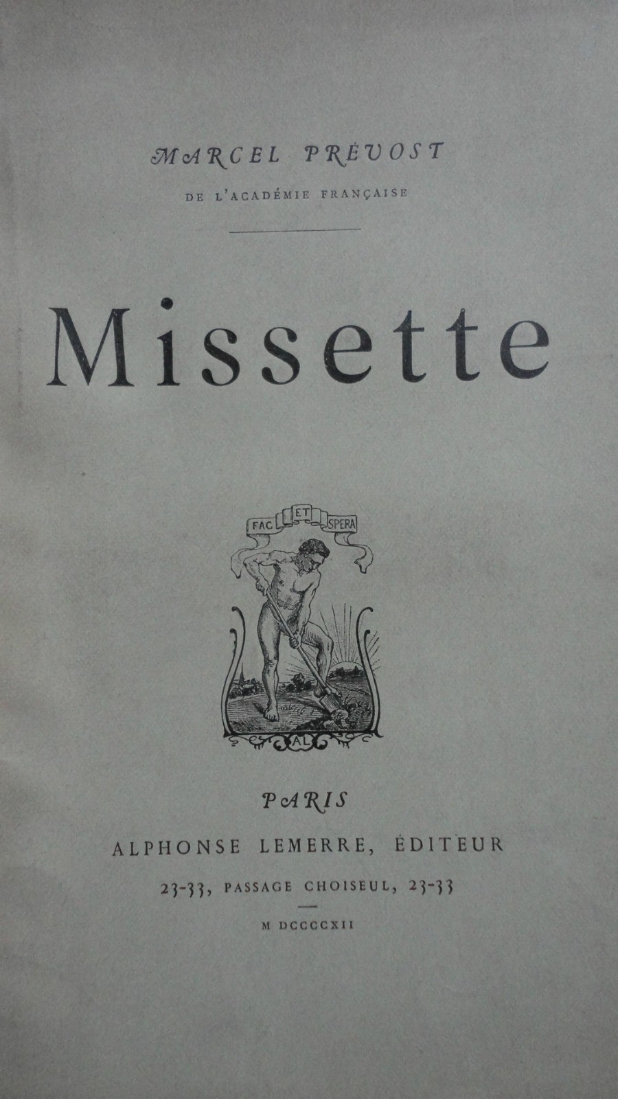 MARCEL PREVOST MISSETTE. LA PAILLE DANS L’ACIER. PROVINCIALE