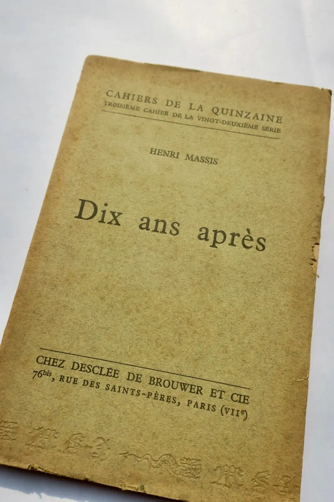 P., Desclée de Brouwer, Cahiers de la Quinzaine (Troisième Cahier de la Vingt-deuxième Série), 1932, in 12 broché, 133 pages, couverture défraîchie