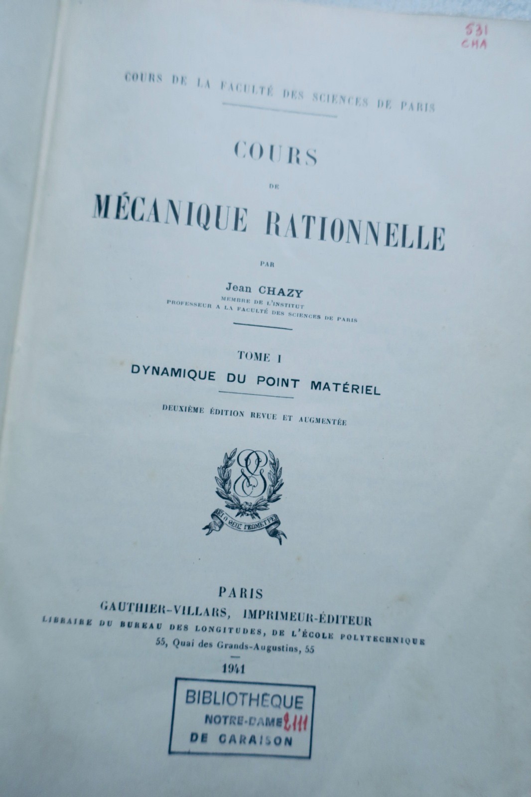 Gauthier-Villars. 1941. In-8°, reliure demi-cuir à coins. 456 pages, un manque en marge d’un feuillet
