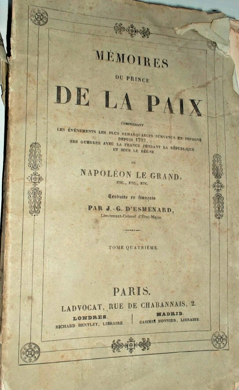 Mémoires du Prince de la Paix, don Manuel Godoy, duc de l’Alcudia, Prince de Bassano, Comte d’Evoramonte, Ancien Premier Ministre du roi d’Espagne, Généralissime de ses armées, Grand Admiral, etc. Traduits en Français d’après le Manuscrit Espagnol
