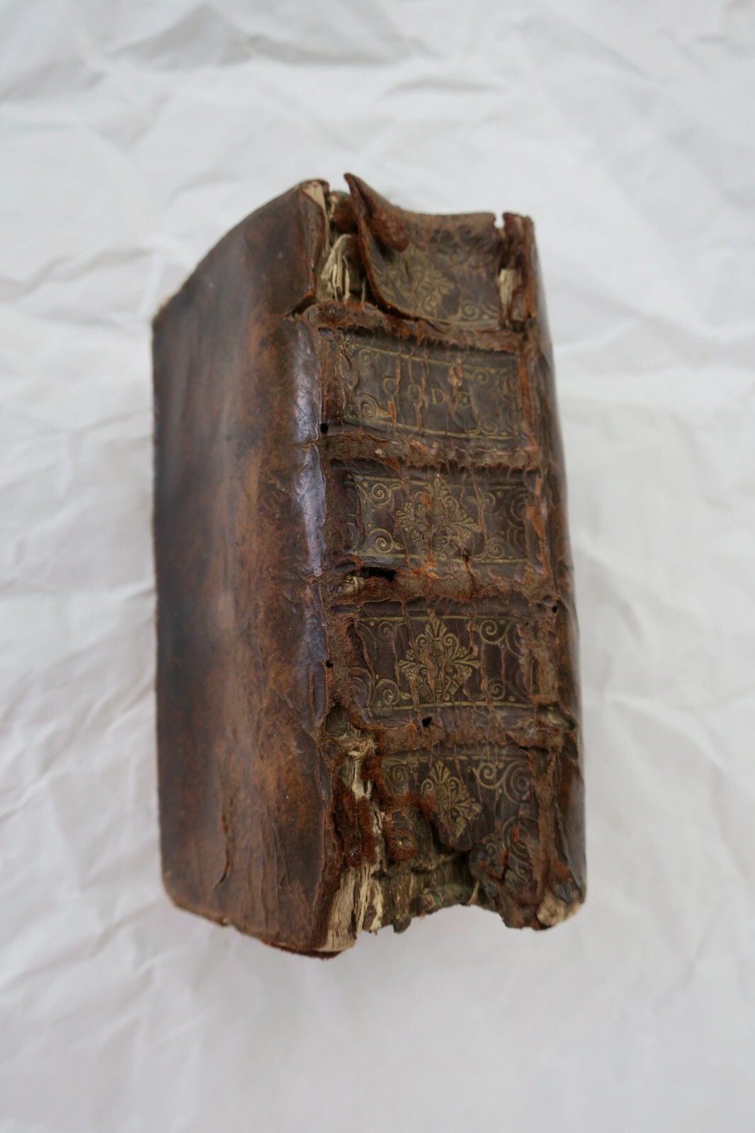 Soit trois ouvrages reliés à la suite dans une reliure plein veau de l’époque, manques en coiffes, coins émoussés, cahiers bien desserrés ou décalés.