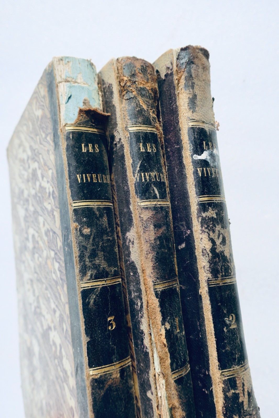 Paris, Alexandre Cadot, 3 volumes, , in 8°, reliure demi-cuir (abimée), fortes traces d’humidité au premier tome, dans le texte