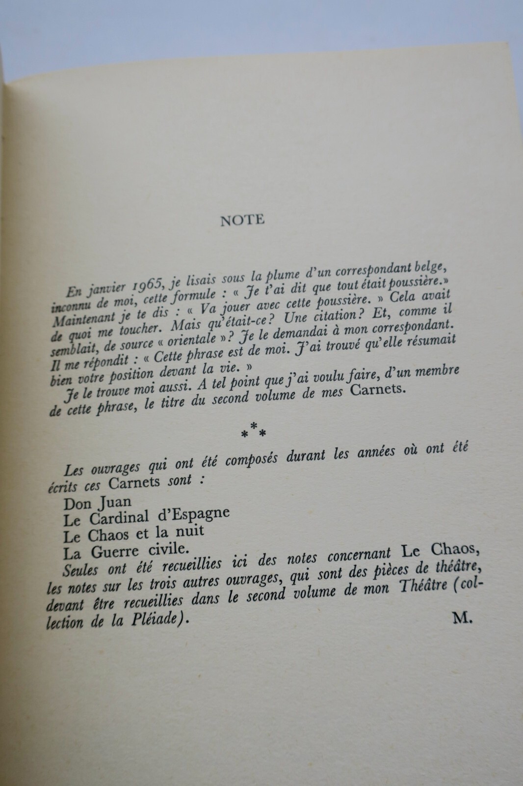 Paris, Gallimard, 1966. In-8°, 205 pp., broché, couverture légèrement défraîchie.