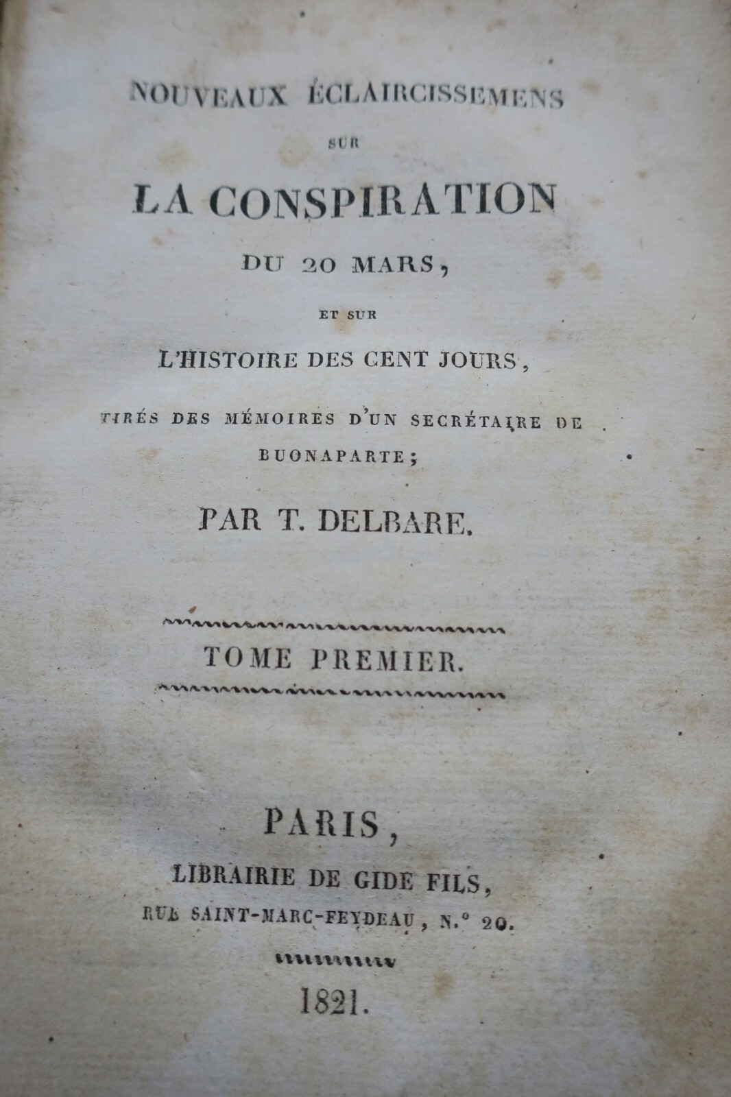 NOUVEAUX ÉCLAIRCISSEMENTS SUR LA CONSPIRATION DU 20 MARS et sur L’HISTOIRE DES CENT-JOURS, tirés des mémoires d’un secrétaire de BUONAPARTE