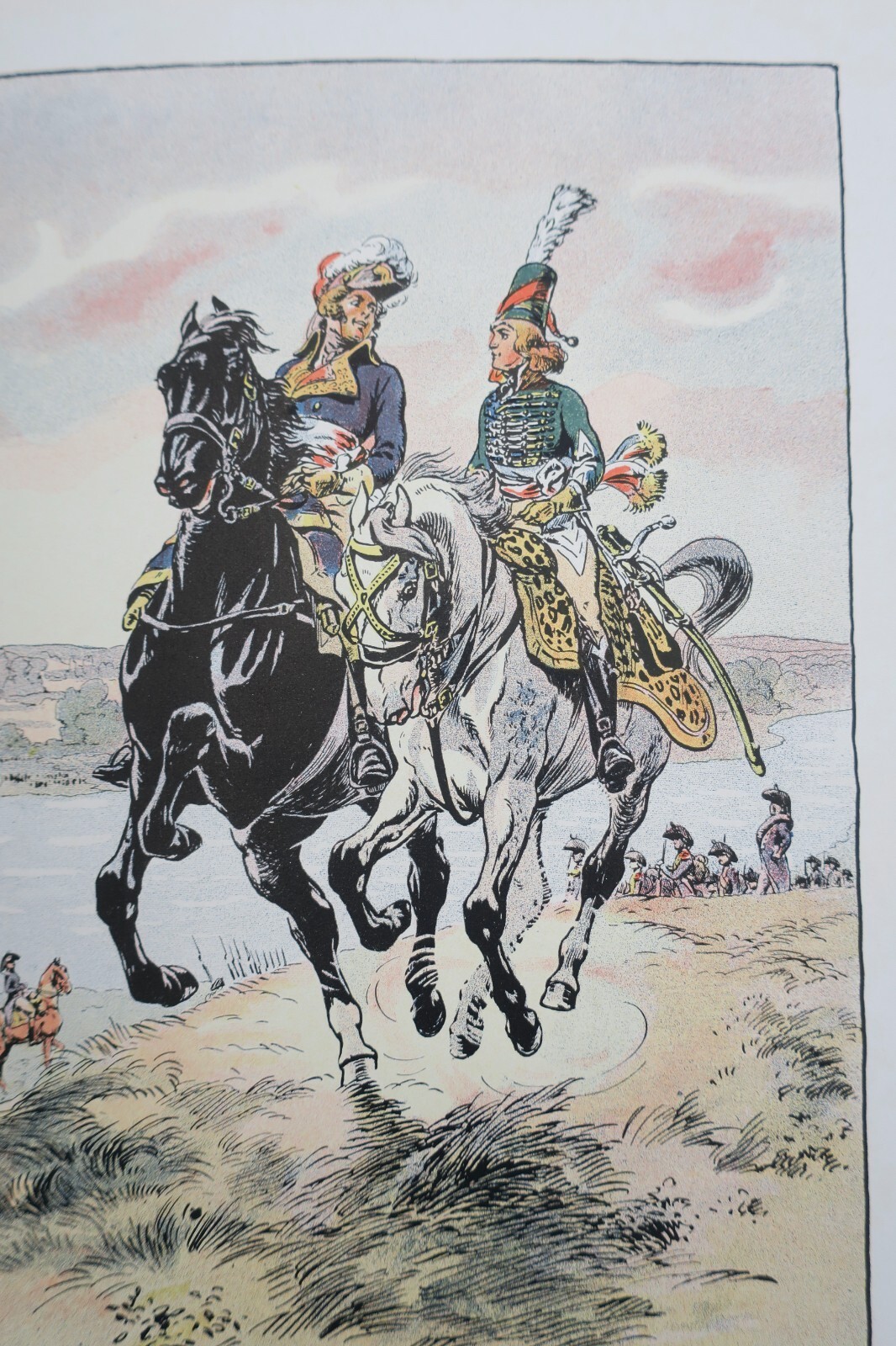Librairie Delagrave, sans date (1916), Paris, in-4°, 46 pp. Reliure éditeur pleine toilée, usures en coins en coiffes, & aux bords, cahiers décalés, quelques rares rousseurs, illustrée de dessins en noir & blanc dans le texte ainsi que de 8 compositions hors-texte, sous serpente, en couleurs de R. de La Nézière.