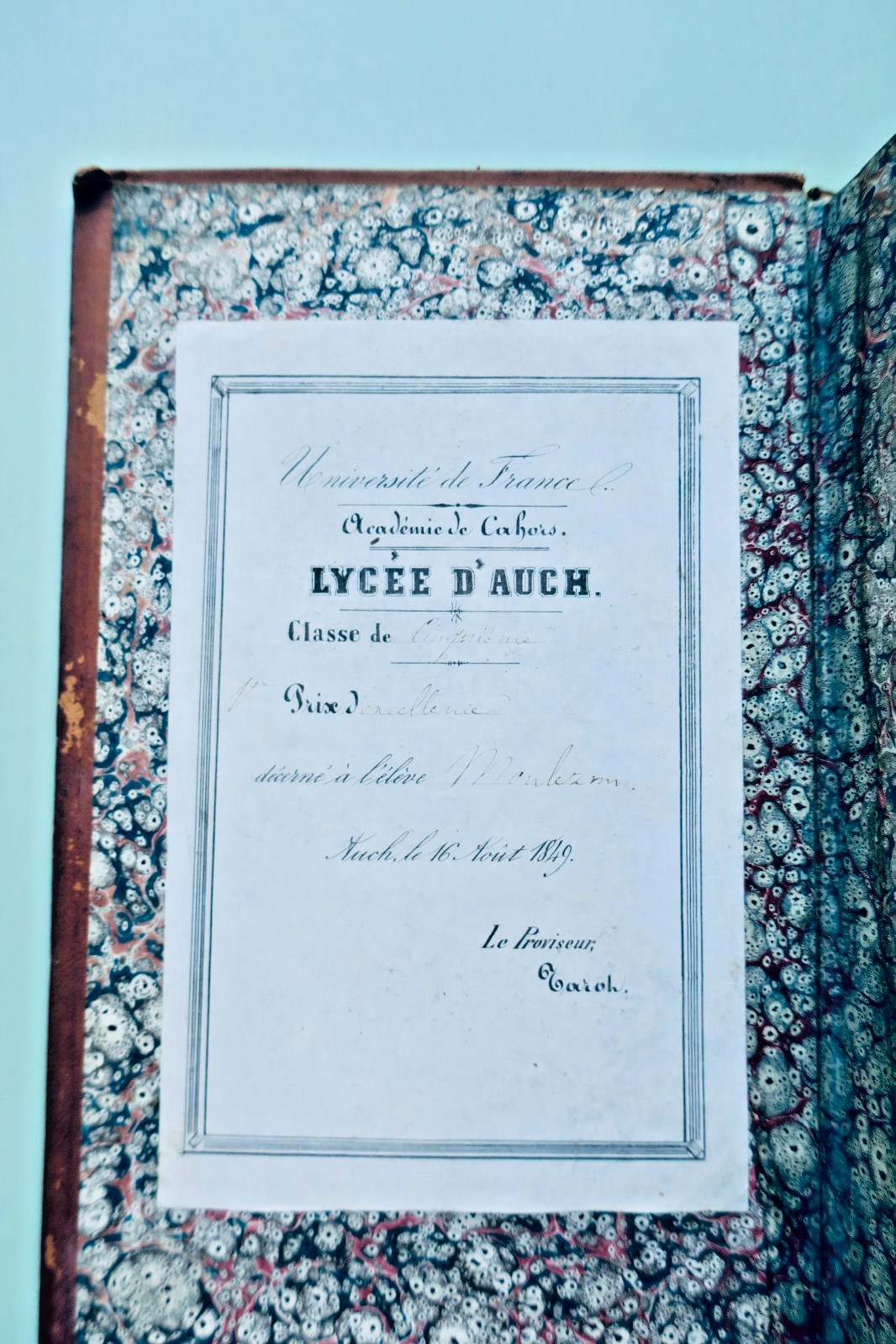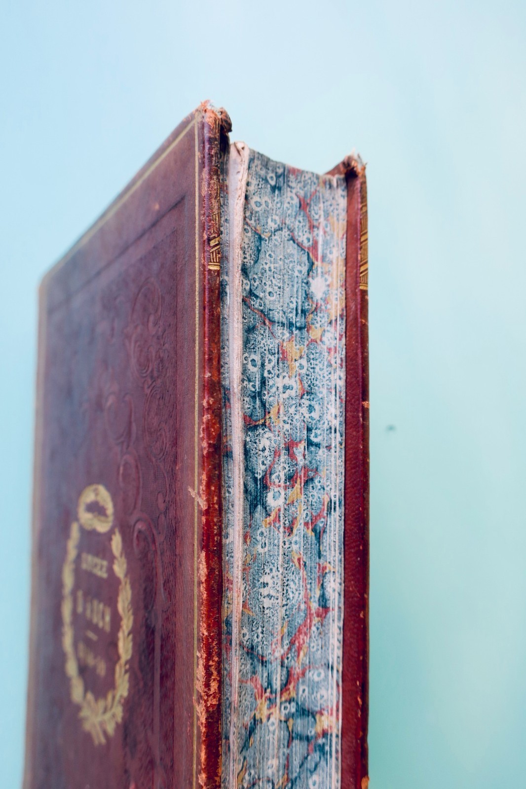 DIDIER, 1843, reliure plein cuir, tranches marbrées, In-8°, XII + 458 pp., petits manques en coiffes, un cahier décalé