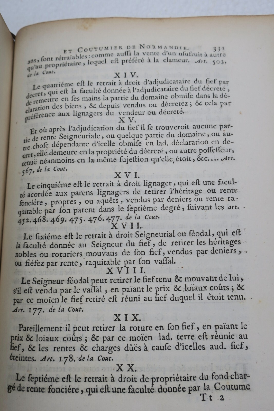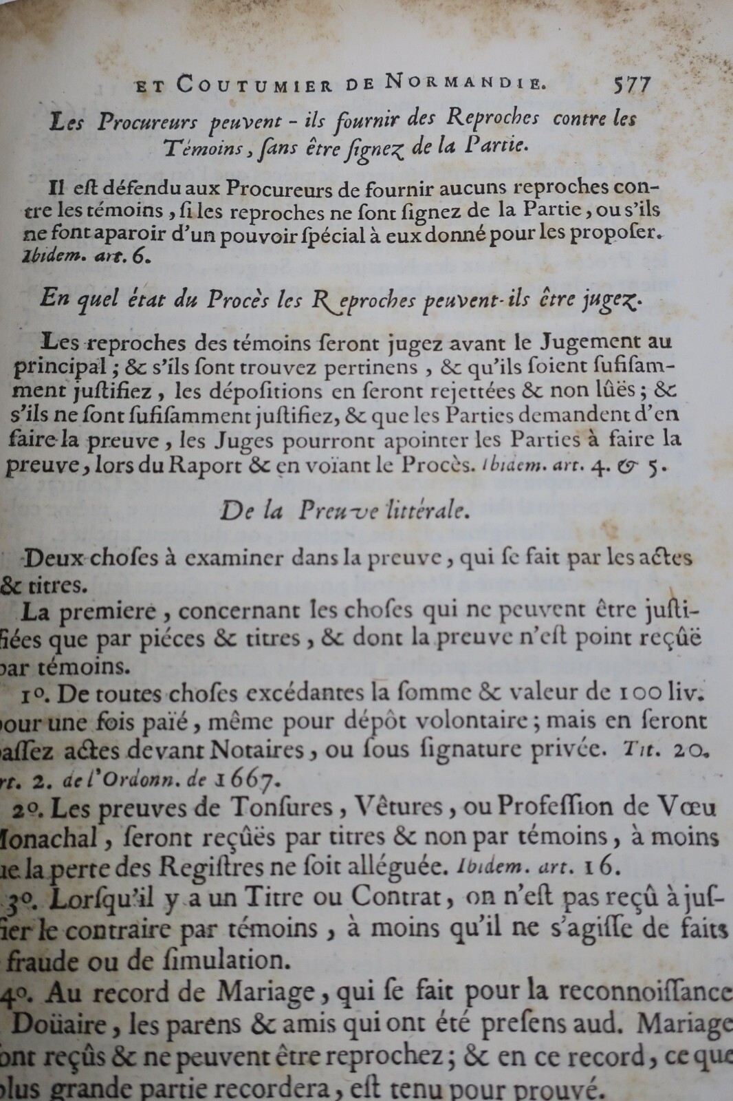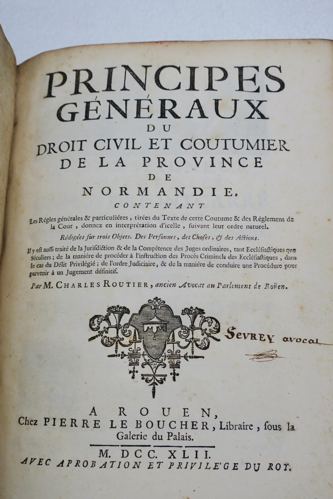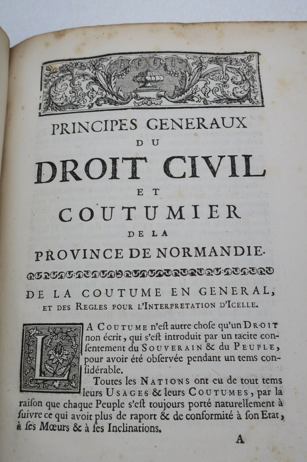 Normandie Principes généraux du droit.. coutumier de la province Normandie 1742