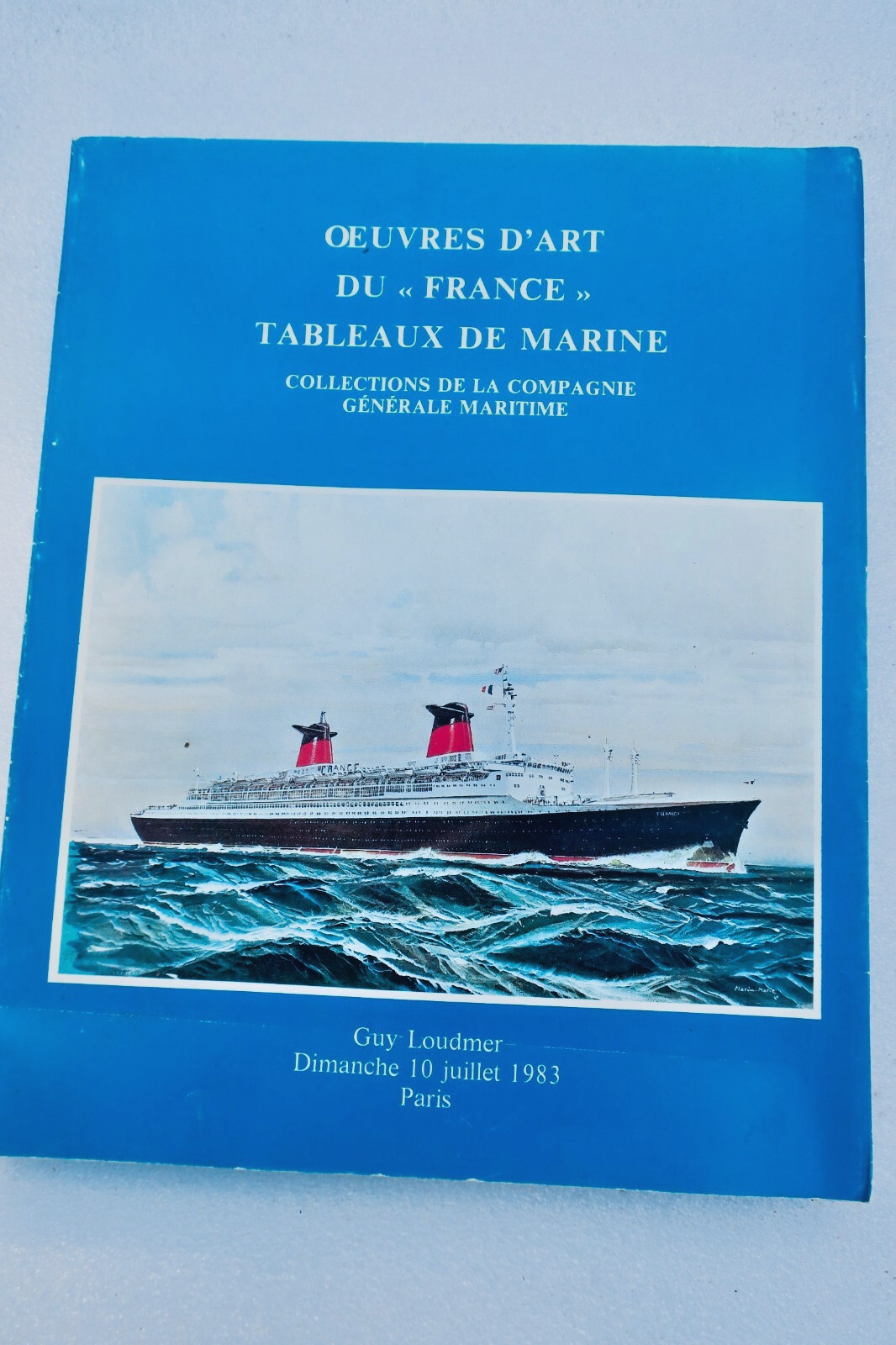 Guy Loudmer. Catalogue d’oeuvres d’art du « France » tableaux de marine; vente du 10 juillet 1983, couverture bleue (défraîchie), broché, 248 lots.